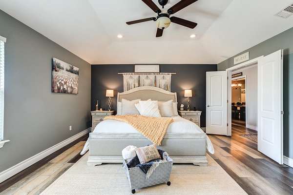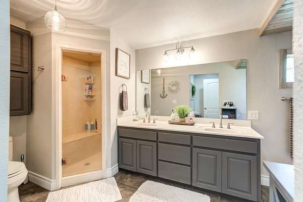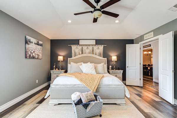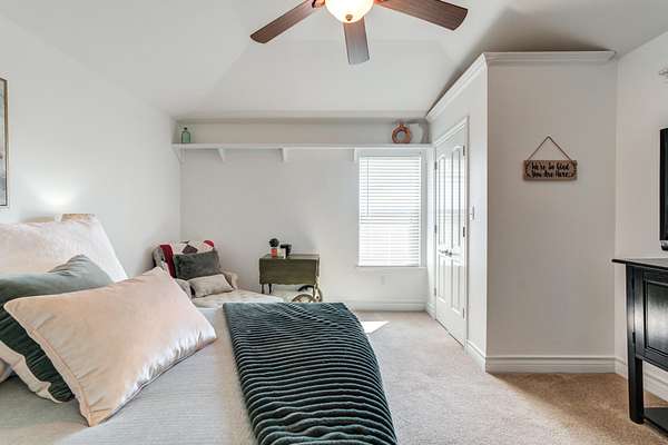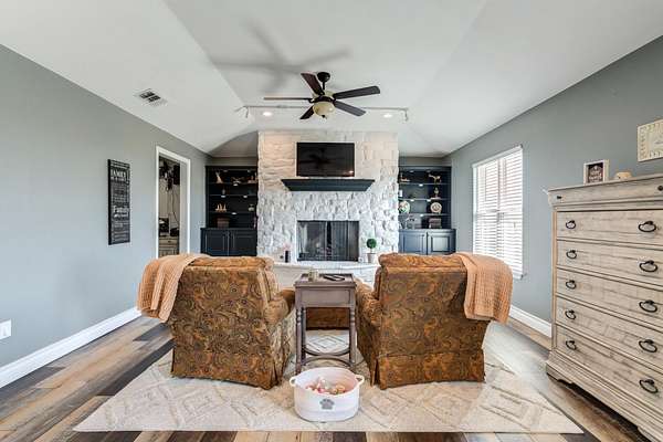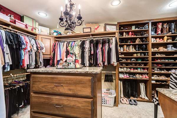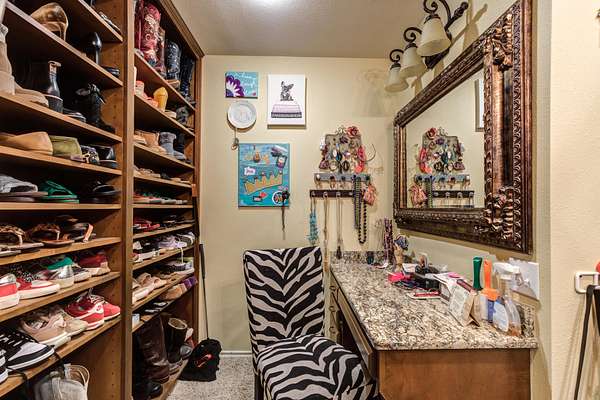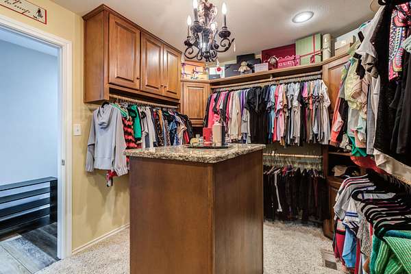 - Bookcases, Built-In Features, Ceiling Fan(s), Cultured Marble Counters, Double Vanity, Granite Counters, Kitchen Island, Pantry, Smart Thermostat, Synthetic Counters, Walk-In Closet(s)