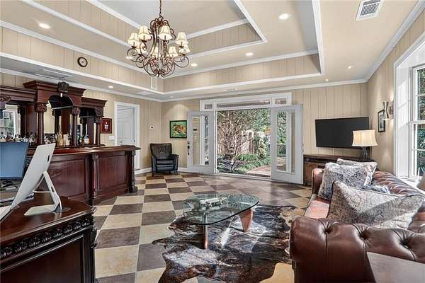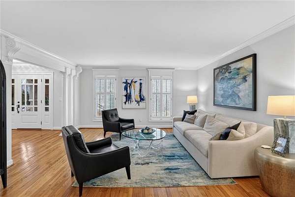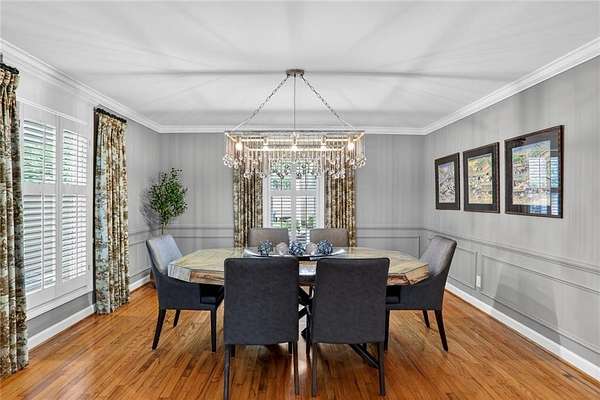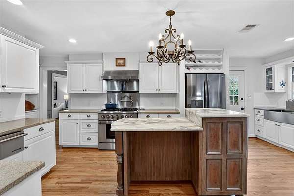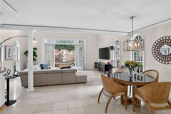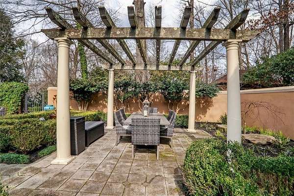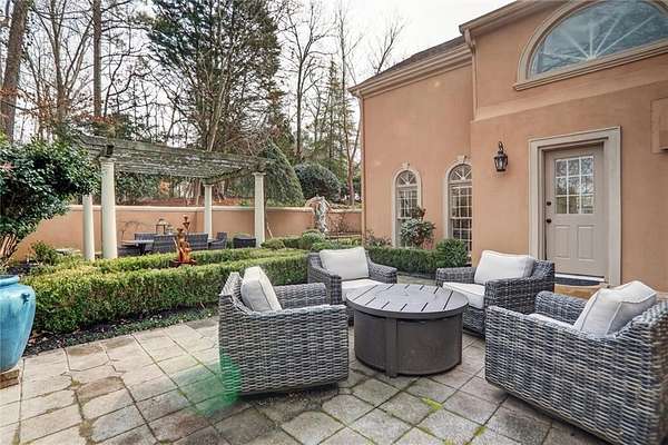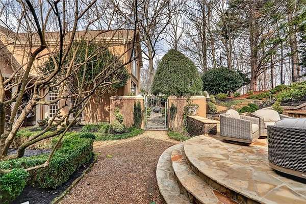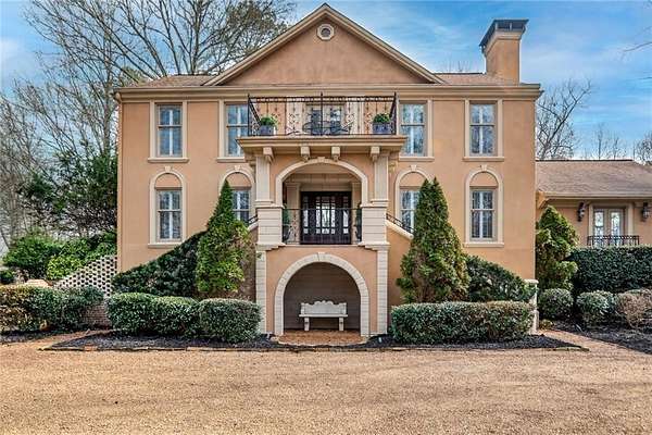 Step into Europe with this unique opportunity to own a French Chateau in Roswell complete with a hard to find newly renovated 2-bedroom carriage house. This breath taking estate also features a 4+ car garage, level & private 2.5+ acre lot which can easily accommodate a pool, English gardens and so much more! Located in the highly sought-after swim/tennis/pickle ball community of Litchfield Hundred and convenient to Historic Downtown Roswell, Crabapple, and Alpharetta only adds to its appeal. You will feel the grandeur of the property the moment you enter through the circle driveway. Upon arrival you'll be greeted by the stately portico complete with an antique marble waiting bench. This impressive 6 bedroom, 4.5 bath home is customized both inside and out to make you feel like you have stepped into Europe. Surrounding the home is a beautiful, extensive stone walking path that takes you through the professionally landscaped grounds. Along the path you'll find a 2 room shed complete with electricity and running water that can easily transform into an artist's studio, play house, green house, or dog kennel! The gated courtyard is the most beloved feature of the home; imagine summer dinners under the pergola while enjoying the soothing sounds of the fountain. Finish the night relaxing in front of the outdoor living room's impressive stone fireplace while taking in the view of a Vitex tree lit up like a work of art. Between the two outdoor seating areas you'll find a stone, 10-person jetted spa and fountain that is adorned by a statue of Poseidon. From the spa step through the 9' French doors into the two-story great room which sets the tone for the rest of the home. The home has been meticulously maintained by loving owners and boasts hardwood floors throughout, new designer lighting, freshly painted interior, updated bathrooms, tankless water heaters, and the HVAC has 5 separate zones... no detail has been overlooked. The main floor has a flexible floor plan, 2 formal living rooms, one with a large marble fireplace, banquet sized dining room, and updated kitchen with professional grade appliances that opens into the great room and dining area. The grand study with a large mahogany bar and double French doors offers views of the courtyard and Juliet balcony. Upstairs there are 3 secondary bedrooms with large walk-in closets, two updated baths, a balcony overlooking the magnificent grounds, plus an oversized primary suite that allows plenty of room for a seating area. The finished carriage house has 2 bedrooms, a new kitchen and bathroom, 2 private entrances, Juliette balcony, large deck overlooking its own private yard, large living/entertaining area, and plenty of storage!