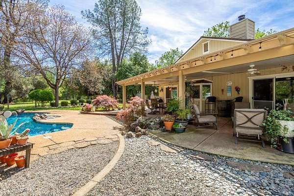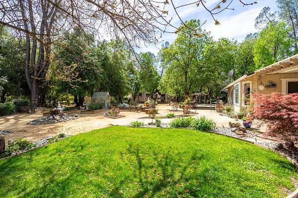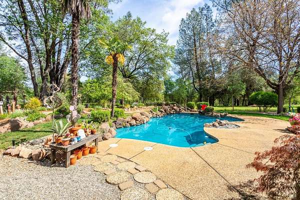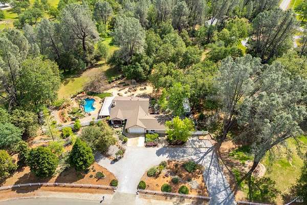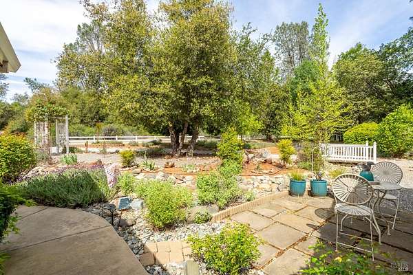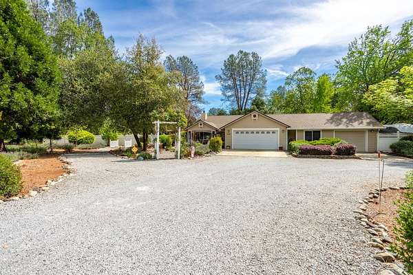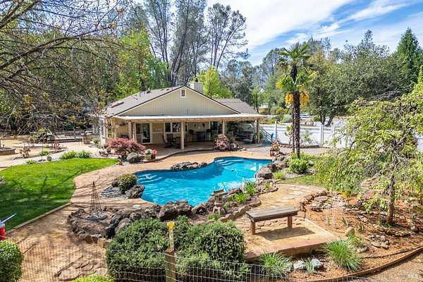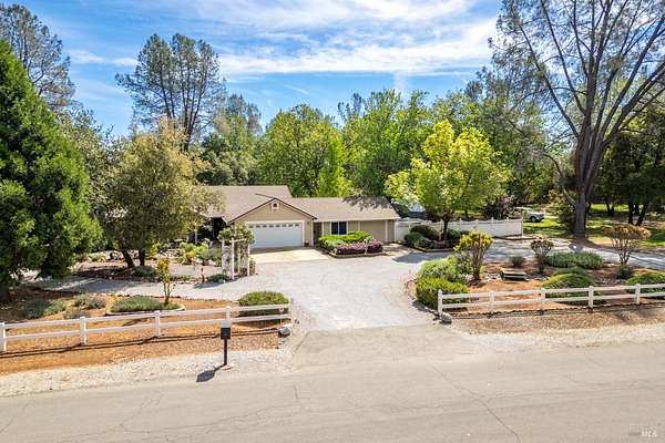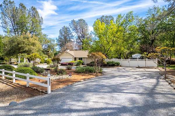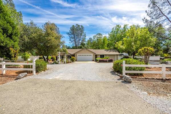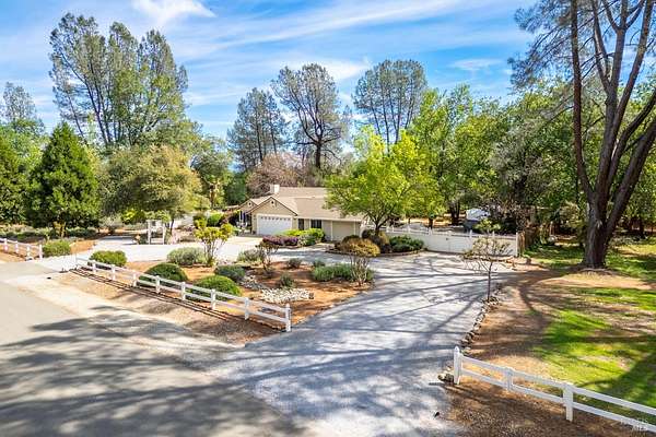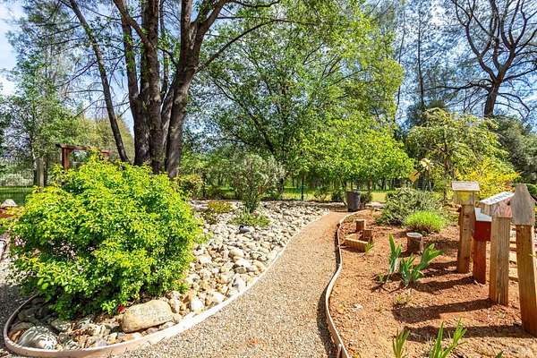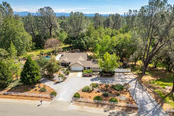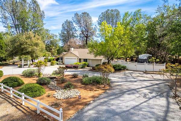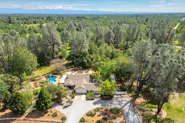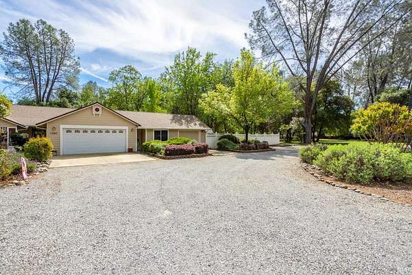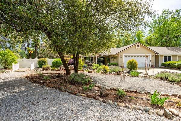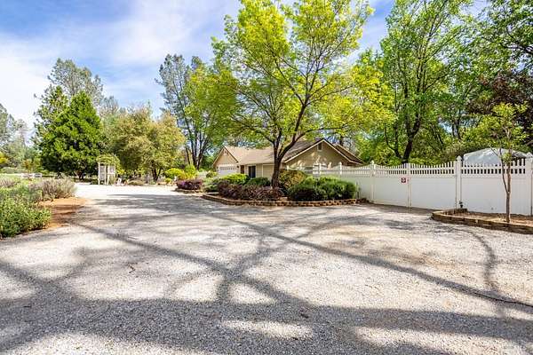 Rare 2 parcel 6 acre property in Whispering Oaks Subdivision, Welcome to a private mountain-garden sanctuary set on over 6 acres of picturesque Northern California landscape, where refined country living meets natural beauty and everyday convenience. Surrounded by majestic oak and pine trees, a seasonal creek, and wide-open skies, this exceptional property offers a peaceful retreat just minutes from lakes, rivers, hiking trails, and endless outdoor recreation. Designed in a classic California ranch style with charming cottage influences, this single-story home offers a warm and inviting layout complemented by a dedicated workshop and additional craft/sewing roomideal for creativity, hobbies, or additional flex space. Expansive windows invite natural light while framing serene views and a year-round wildlife corridor where deer and waterfowl frequently pass through. The grounds are thoughtfully designed for both function and enjoyment. A fully fenced interior yard includes a greenhouse for early planting, garden storage building, full woodshed, raised vegetable beds, and a large fenced chicken area allowing for true farm-to-table living. Native landscaping and drip irrigation systems in both front and back ensure sustainability and ease of maintenance, while seasonal highlights include fresh blueberries in the spring and figs in the summer. Outdoor living is elevated with a resurfaced swimming pool (Spring 2026), a covered patio perfect for warm summer days, and a charming stone firepit for cozy evenings under the stars. The property also offers ample space for boat and RV parking, adding to its versatility. Set on a quiet, tree-lined street with classic farm-style fencing and a welcoming circular driveway, this home delivers both privacy and accessibilityjust 15 minutes from city conveniences including shopping, dining, and healthcare. A rare opportunity to experience the best of Northern California livingwhere space, nature, and lifestyle come together in perfect harmony.
