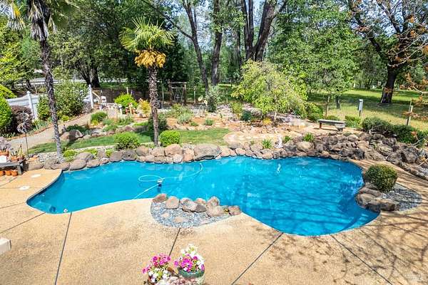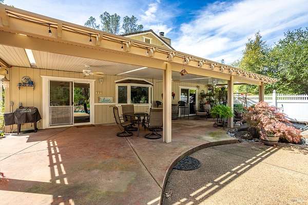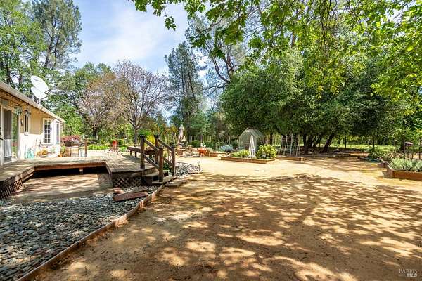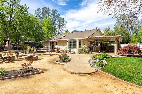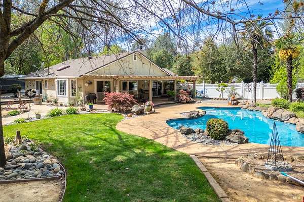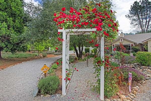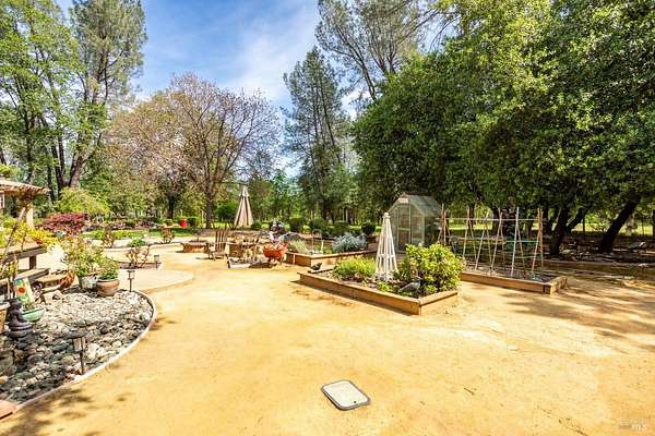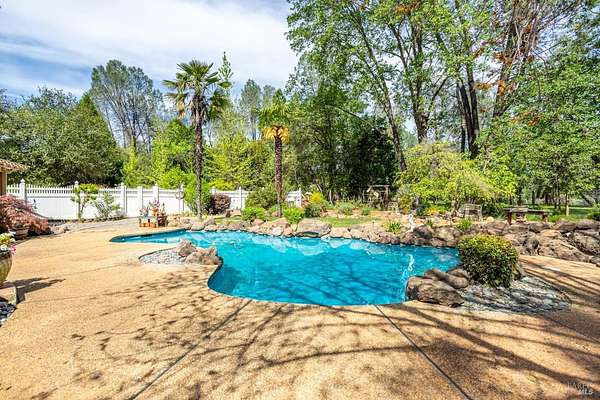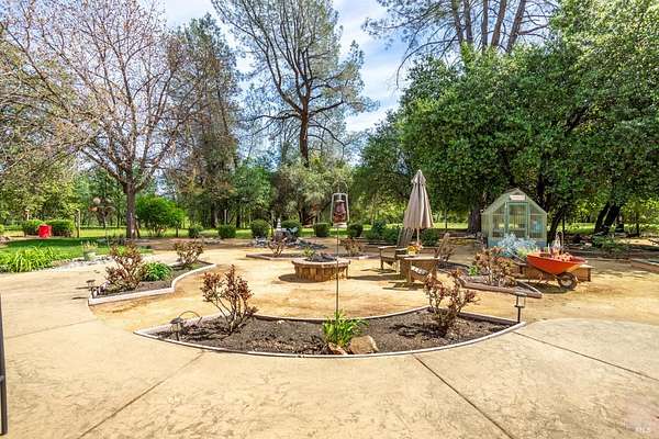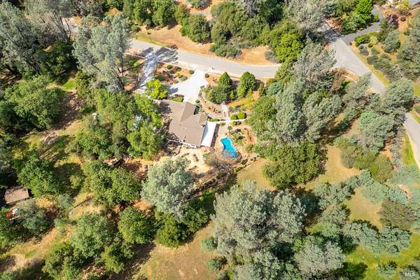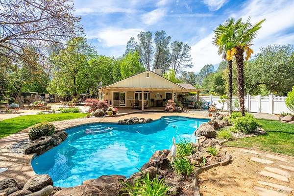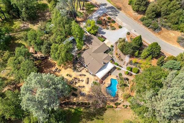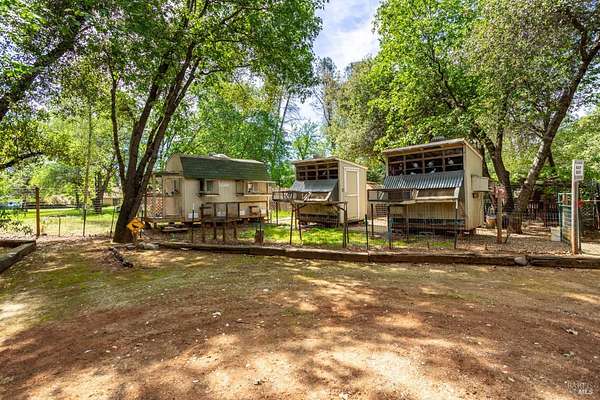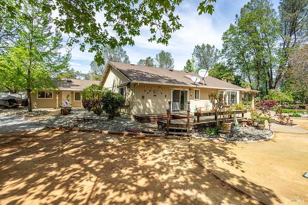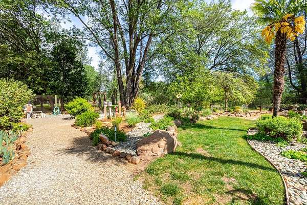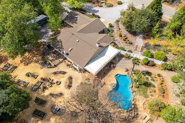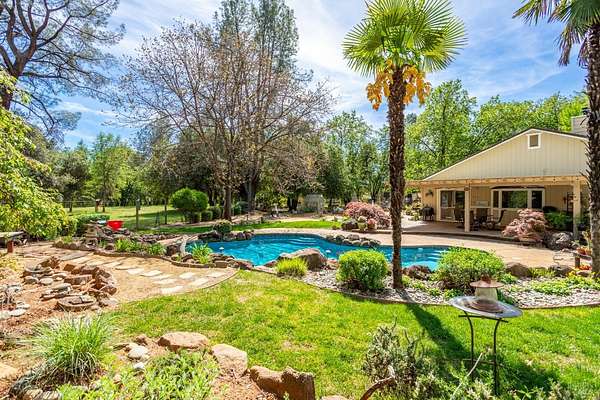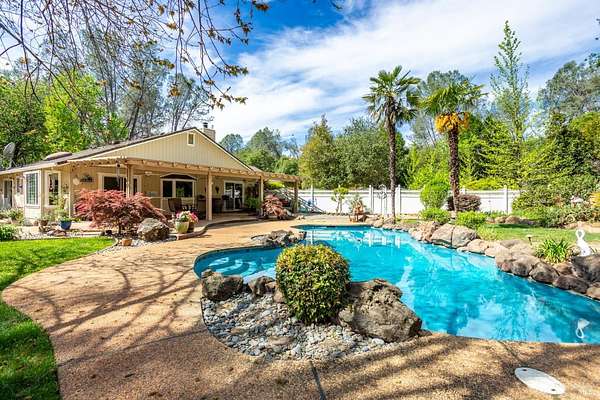 Rare 2 parcel 6 acre property in Whispering Oaks Subdivision, Welcome to a private mountain-garden sanctuary set on over 6 acres of picturesque Northern California landscape, where refined country living meets natural beauty and everyday convenience. Surrounded by majestic oak and pine trees, a seasonal creek, and wide-open skies, this exceptional property offers a peaceful retreat just minutes from lakes, rivers, hiking trails, and endless outdoor recreation. Designed in a classic California ranch style with charming cottage influences, this single-story home offers a warm and inviting layout complemented by a dedicated workshop and additional craft/sewing roomideal for creativity, hobbies, or additional flex space. Expansive windows invite natural light while framing serene views and a year-round wildlife corridor where deer and waterfowl frequently pass through. The grounds are thoughtfully designed for both function and enjoyment. A fully fenced interior yard includes a greenhouse for early planting, garden storage building, full woodshed, raised vegetable beds, and a large fenced chicken area allowing for true farm-to-table living. Native landscaping and drip irrigation systems in both front and back ensure sustainability and ease of maintenance, while seasonal highlights include fresh blueberries in the spring and figs in the summer. Outdoor living is elevated with a resurfaced swimming pool (Spring 2026), a covered patio perfect for warm summer days, and a charming stone firepit for cozy evenings under the stars. The property also offers ample space for boat and RV parking, adding to its versatility. Set on a quiet, tree-lined street with classic farm-style fencing and a welcoming circular driveway, this home delivers both privacy and accessibilityjust 15 minutes from city conveniences including shopping, dining, and healthcare. A rare opportunity to experience the best of Northern California livingwhere space, nature, and lifestyle come together in perfect harmony.
