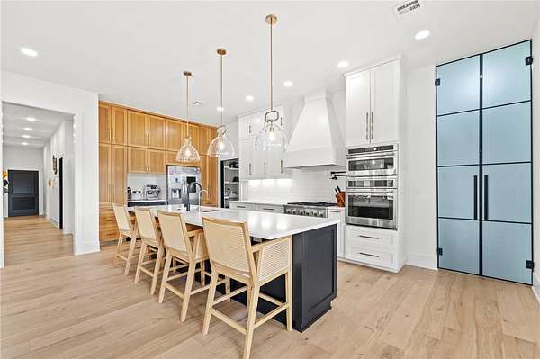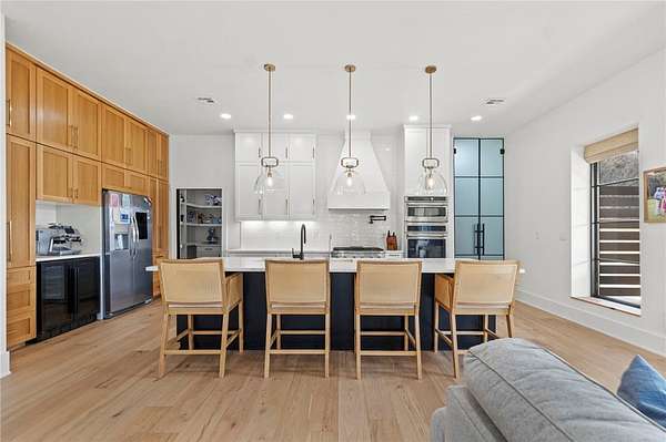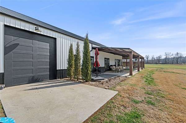 Modern farmhouse estate on 10 private acres in Prairie Grove with direct frontage along Sulphur Fork Creek. This 4-bedroom, 3-bath residence features 10-foot ceilings throughout, hardwood flooring, black-framed windows, red iron building construction and a seamless open layout designed for both entertaining and everyday living. The chef's kitchen offers custom cabinetry, double ovens, an oversized island, and an expansive walk-in pantry. Dedicated office and bonus room provide flexibility. Outdoors includes a private pond, covered patio, and a 1,000 sq ft shop with 12-ft pull-through doors on both sides. A rare blend of refined design and functional acreage.