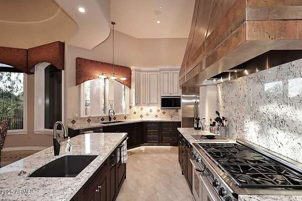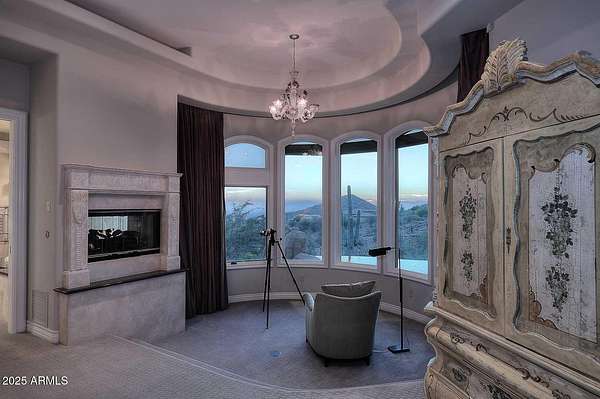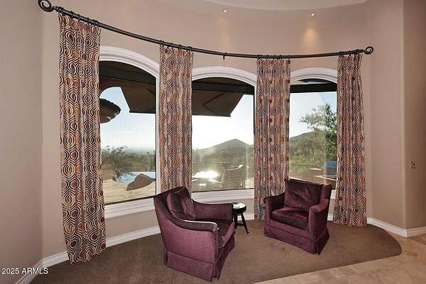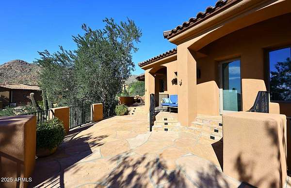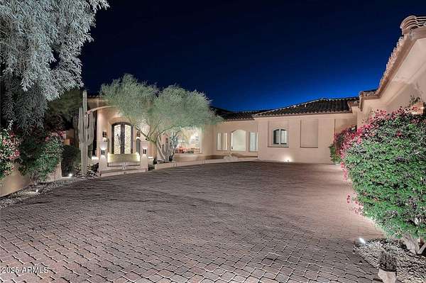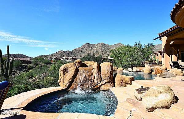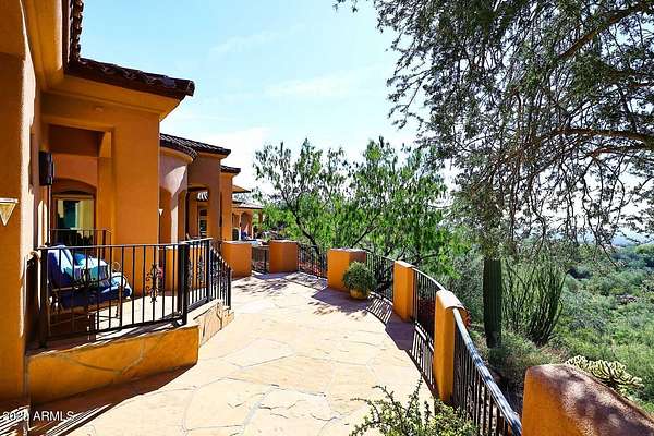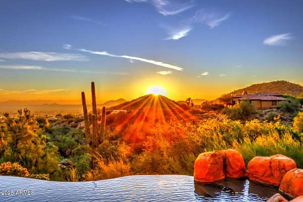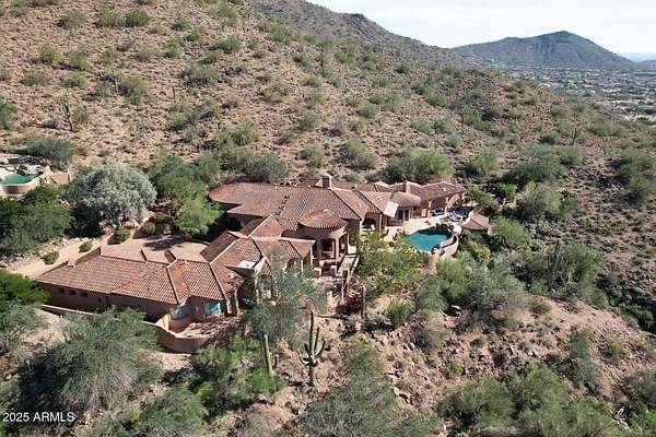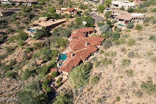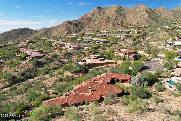This Mediterranean inspired and architecturally designed home was created precisely to maximize every detail of the views, the wonderful high desert natural vegetation it lives within AND the incredible privacy and serenity that you won't find elsewhere. The city light views are at least 180 degrees and then natural high desert vegetation in all other directions. A true work of art, providing timeless design, 4 bedrooms 3 of which are ensuite and most rooms have private exterior access to accent Arizona's indoor/outdoor living. The home has a true chef's kitchen/catering kitchen, six burner gas stove, copper clad stove hood, 2 dishwashers, pantry with full size freezer, all top rated appliances in custom designed and imported Downsview cabinets. This is not just a great view home, nor just a large 8" stucco quality project, all designer done, Chihuly glass in 5 spaces, Murano chandelier from Italy, but look at the romantic outdoor living! Heated pool/spa overlooking the city and WAY too many features to detail that make living here like the best vacation ever. Long private drive and parking/staging with pavers lead to a spacious 4 car garage, and on to the entry way over a bridge to the custom entry doors. The benefits of Scottsdale Mountain itself are amazing, from beautiful land planning and thoughtful NAOS thruout the project of 718 homesites to the Tennis and pickleball Center, community ramada and spa, all wrapped in the McDowell Mountain preserve behind and around it. It offers 24/365 guarded and gated security and a few fingers of sub gated set aside privacy. You will feel like you are in a different city, yet are within 30 minutes of Phoenix Sky Harbor International airport, the best schools and world class golf and shopping!