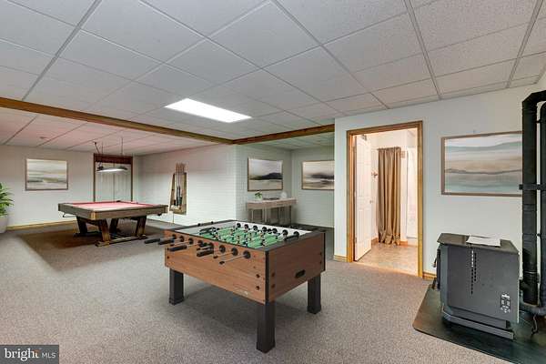 - Attic, Bar, Carpet, Ceiling Fan(s), Country Kitchen, Entry Level Bedroom, Family Room Off Kitchen, Open Floor Plan, Pantry, Pellet Stove, Recessed Lighting, Soaking Tub Bathroom, Stall Shower Bathroom, Tub Shower Bathroom, Walk-In Closet(s), Window Treatments, Wood Stove