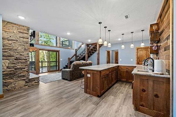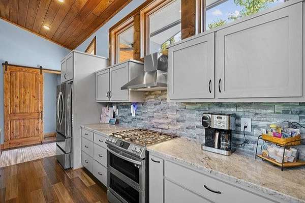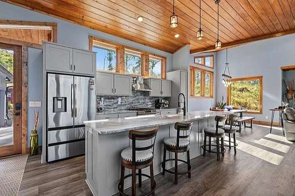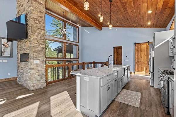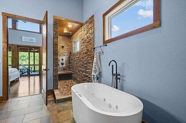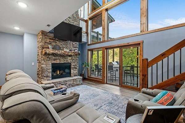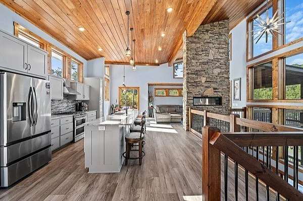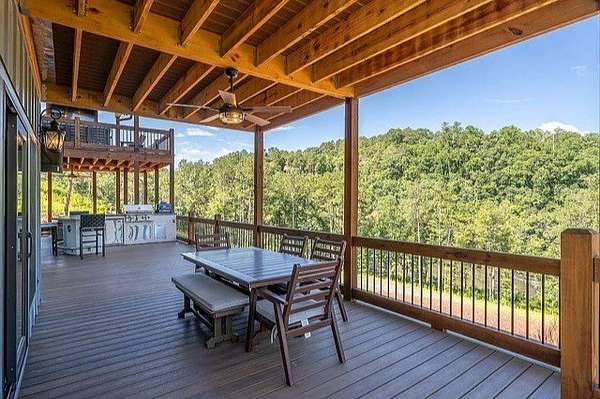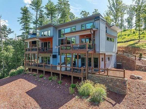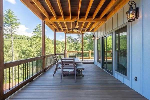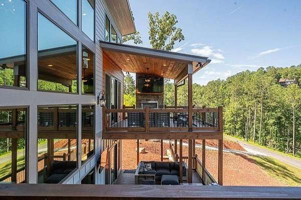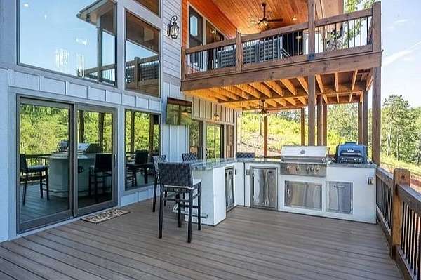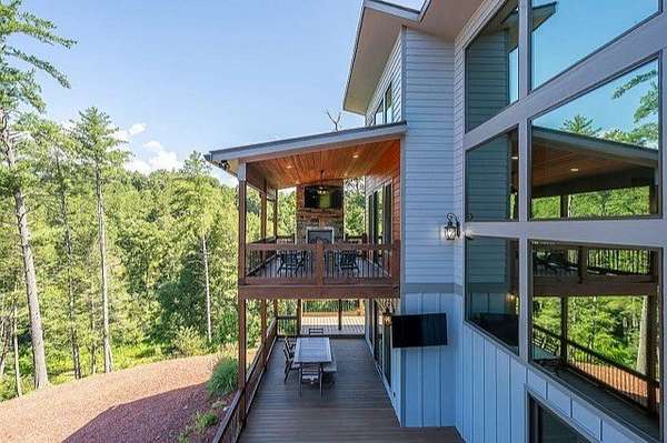 This stunning home was built in 2023 & offers a luxurious living experience in a serene natural setting. Situated on a generous lot size of 3.18 acres with views & sounds from the beautiful Coosawattee River! This property fronts Mountaintown Creek, which offers some of the best fly fishing around! The open-concept layout connects the living room, dining area, & gourmet kitchen, creating a perfect space to gather with family & friends. The chef-inspired kitchen is a culinary delight, gas cooking, custom cabinetry, granite countertops, and a spacious 12' island with seating. The primary suite is a true retreat, offering a peaceful sanctuary for rest & relaxation. The en-suite bathroom is a spa-like oasis, complete with a standalone jacuzzi tub, separate fully stone 12' walk in shower, dual vanities, and a walk-in closet. Additionally, there are 2 guest bedrooms, each with their own en-suite bathroom, providing comfort and convenience. 2 laundry rooms. Perfect for in-laws. This house was built for entertaining! Step outside to the expansive outdoor living space. 2 outdoor fireplaces. The large bottom 64' long front deck is the perfect spot for al fresco dining with a large outdoor kitchen, enjoying sports with two TVs or simply soaking in the tranquility of the surrounding river landscape. Another 35' long side deck hosts a jacuzzi spa with private firepit garden landscaping. Additionally, there are two private decks on the main level from the living room & master suite. All exterior decks are built with trek-decks. Located in the gated High River Community this property offers a unique blend of luxury living and natural beauty. Ellijay Ga has so much to offer from hiking, mountain biking, fishing, explore the many apple orchards & wineries or get a great meal in the historical downtown! Gilmer County is popular for retirees with an exemption from school taxes after 65 years old. It's an easy 1.5 hour drive to Atlanta, which makes it an easy weekend getaway too!