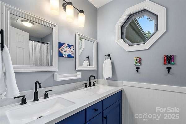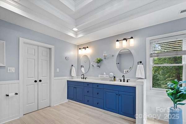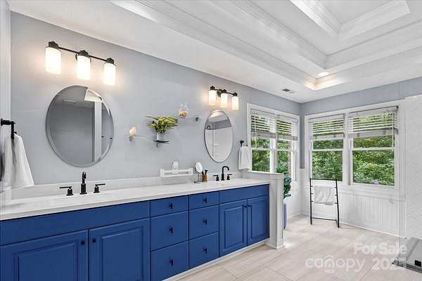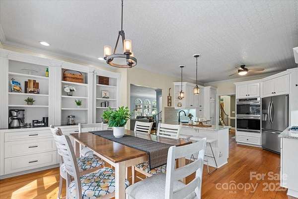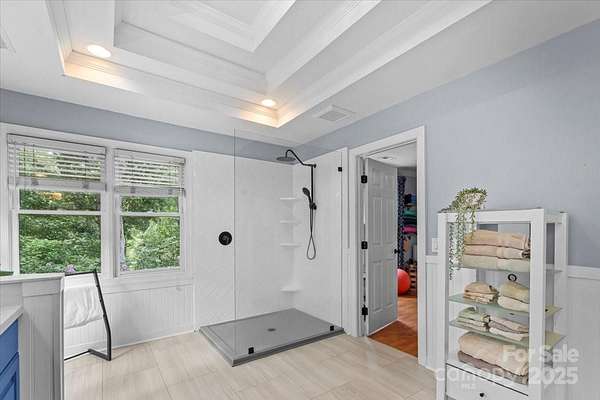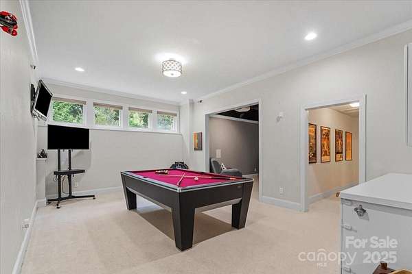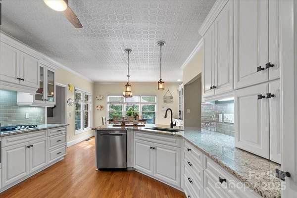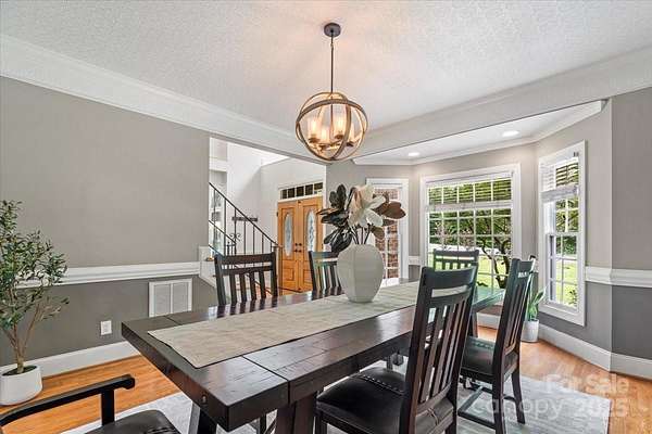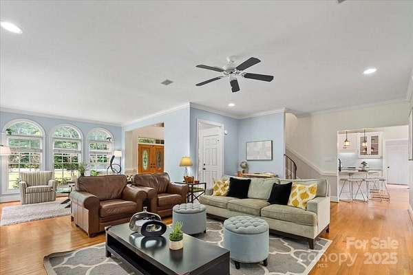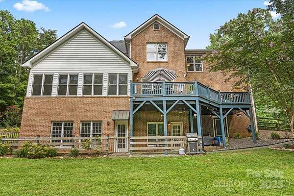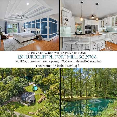 A rare Fort Mill find: this home sits on three wooded acres with a private pond and the freedom of no HOA, all just minutes from everywhere you want to be. And that's only the beginning. Offering nearly 4,900sqft of living space, this Fort Mill home showcases striking architectural details throughout, from a soaring two-story foyer with tiered tray ceiling to the vaulted, light-filled sunroom, and the dining and kitchen ceilings finished with intricate tile accents. Parquet flooring and a double staircase set an elegant tone, while open living areas blend entertaining with everyday comfort. Upstairs, the primary suite continues the theme with a dramatic multi-level tray ceiling, custom millwork accent wall, and an extended retreat area for added style and sophistication. The luxury bath, updated in 2022, includes a walk-in shower and plumbing ready for a corner soaking tub if desired. A large walk-in closet with built-in drawers provides ample storage. Three additional spacious bedrooms and a refreshed hall bath complete the upper level. The kitchen combines timeless design with thoughtful updates, solid-wood cabinetry, granite countertops, stainless appliances including double ovens and gas cooktop, a generous peninsula with seating, and a breakfast area with custom built-ins that create a perfect coffee nook. Also on the main level: a large sunroom with walls of windows, a family room with gas fireplace and built-ins, a formal living room with arched transoms, and a spacious dining room with bay window. The finished basement impresses with high ceilings and flexible spaces for work or play, including a home theater, expansive office with built-in desk and walkout access, exposed-brick flex area with dog run, full bath, and abundant storage with a large utility room. Outdoor living takes center stage with a main-level deck for grilling and relaxing, a lower patio, above-ground pool with surrounding decks, a private pond, treeline privacy in every direction, and access to wooded trails along the creek. The property line even extends beyond the street, preserving wooded privacy out front. Recent Updates: tankless water heater (2025), garage doors/motors/smart openers (2025), architectural shingle roof (2024), main level & basement HVAC system (2022), dual air/UV purification systems (installed 2018, bulbs replaced 2022), well bladder (2025), whole-home water filtration (2024), and more. This exceptional Fort Mill, SC property blends privacy, character, and modern comfort, truly a one-of-a-kind retreat.