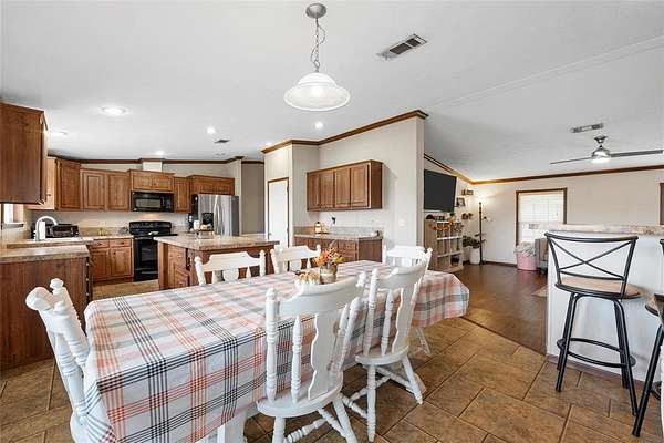 Est $2,284/moDiscover peaceful country living on 10 beautiful acres! This cozy 3-bedroom, 2-bath mobile home features an open-concept layout, inviting front porch, and plenty of space to make it your own with just a few finishing touches. Property includes a small barn, workshop, and a convenient RV awning with carport. Ag exemption already in place, and sellers are motivated! Enjoy the freedom and space of rural living while still having everything you need right here at home.