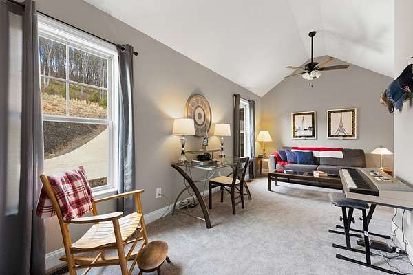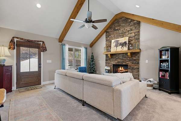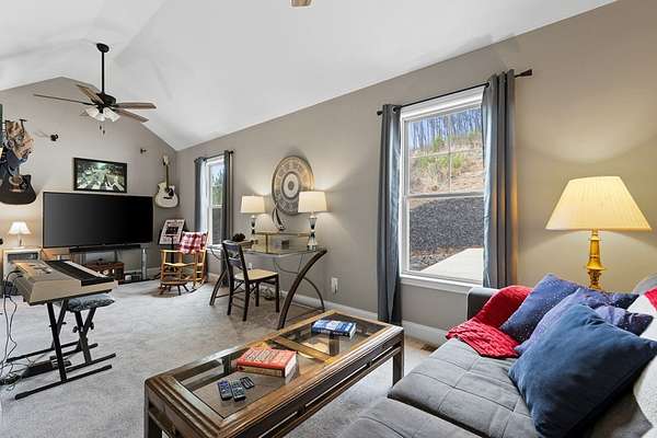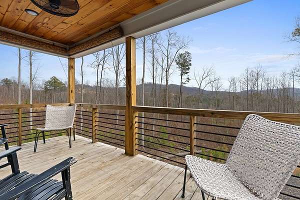 Welcome to The Vineyard at Yukon, one of the newest and most sought-after gated communities in North Georgia, known for its unbeatable long-range mountain views and million-dollar homes throughout. A new pavilion is in place, and a community pool is scheduled to break ground this spring, enhancing the lifestyle and long-term value of this growing luxury neighborhood. Ideally located near shopping and dining, this community offers both privacy and convenience. Just outside the gates you'll find the award-winning Chateau Meichtry Winery and a charming local farmstand offering farm-fresh eggs and seasonal produce. Situated on 1.68 acres, this better-than-new, lightly used second home has never been rented and reflects true pride of ownership. Surrounded by wildlife and panoramic views, the setting is peaceful and private. Inside, the light and bright open floor plan features exposed wood beams in the living room, a rock fireplace with hearth, and tall vaulted ceilings. LVP flooring, 5-panel doors, and soft-close cabinetry add quality throughout. The kitchen offers white shaker cabinets, granite countertops, farmhouse stainless sink, stainless steel appliances, breakfast bar, eat-in area, walk-in pantry, and laundry closet with washer/dryer hookups. This home includes 2 bedrooms and 2 baths, with vaulted ceilings in both bedrooms. The primary suite features two walk-in closets and scenic views. Granite countertops and white shaker cabinetry continue in the baths. Enjoy a spacious front porch, large concrete driveway, and covered back porch with wood plank ceilings overlooking the acreage. The crawl space provides excellent ceiling height and ample storage for tools and lawn equipment. There is plenty of room to add a garage to the left side of the home. Furniture is negotiable. Short-term rentals are allowed, offering flexibility for future ownership plans. An exceptional opportunity in The Vineyard at Yukon.
