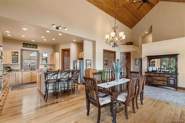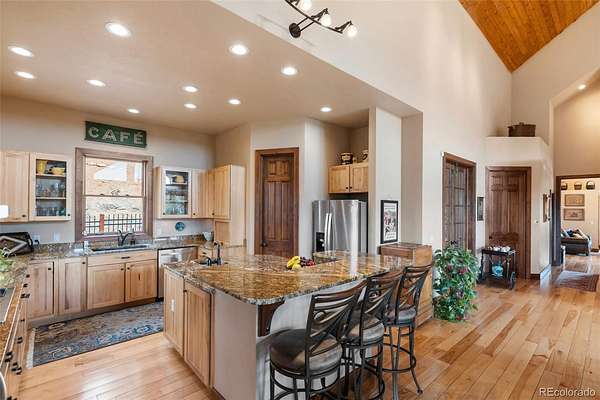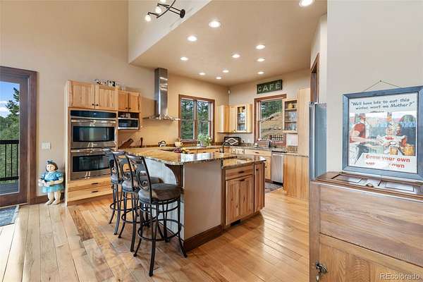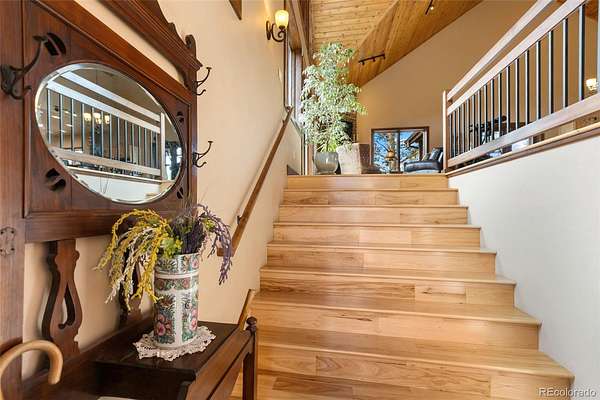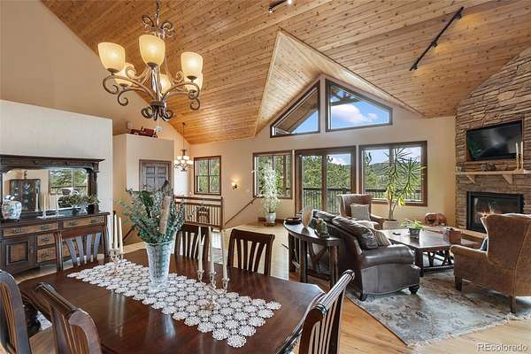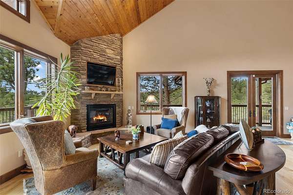 This extraordinary Woodland Park estate redefines mountain luxury, beginning with a private, gated drive that gracefully winds through professionally designed, rock-accented landscaping, setting a tone of exclusivity and serenity from the moment you arrive.