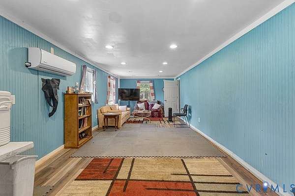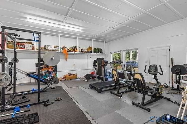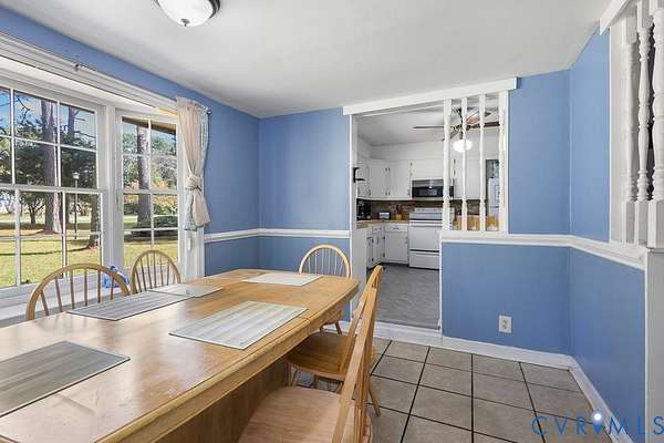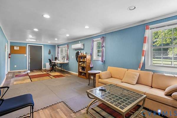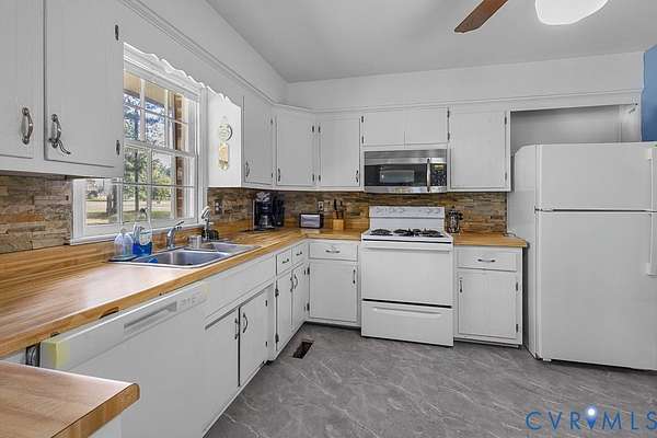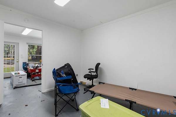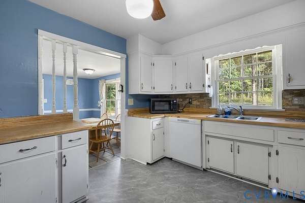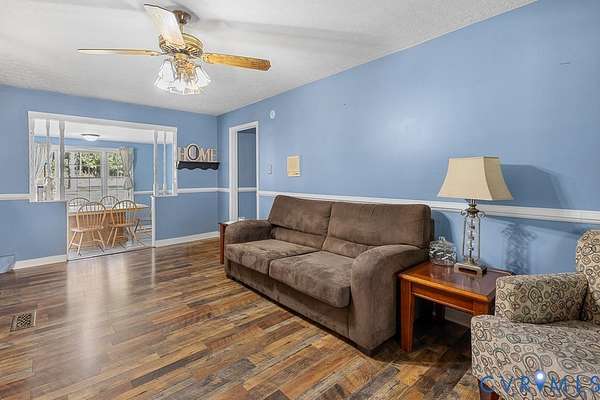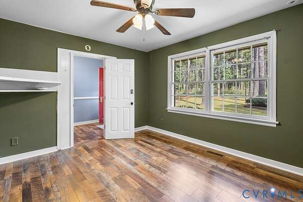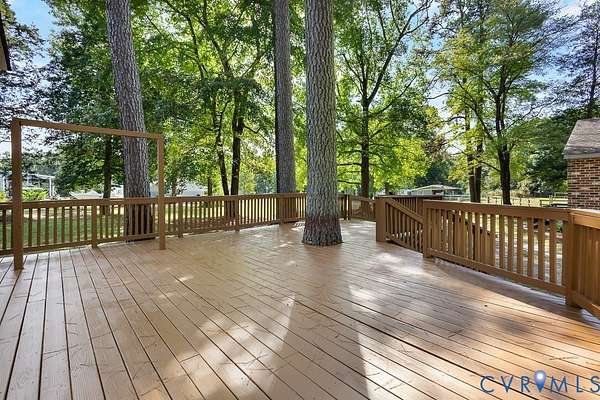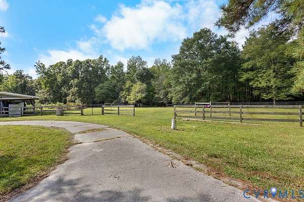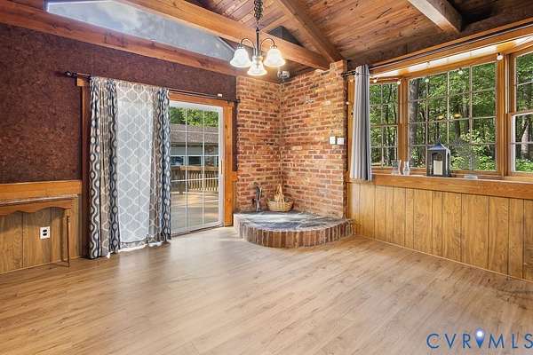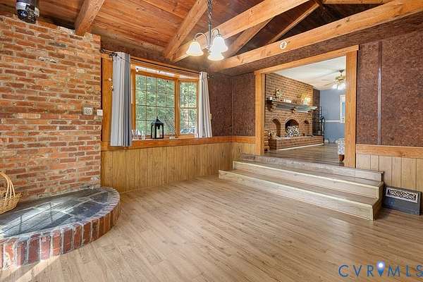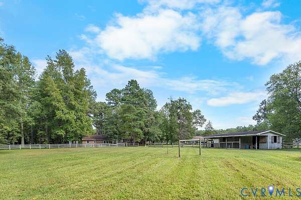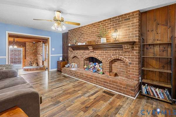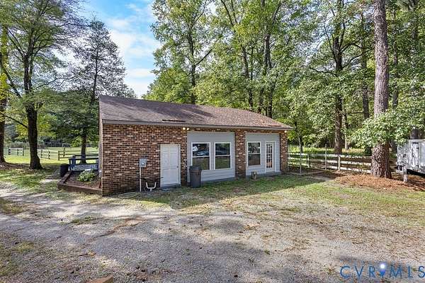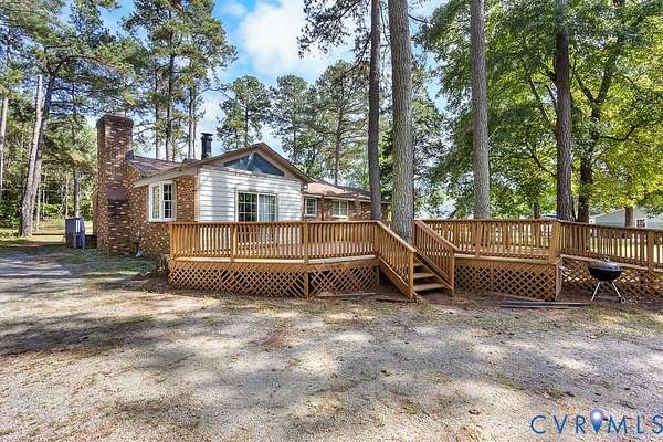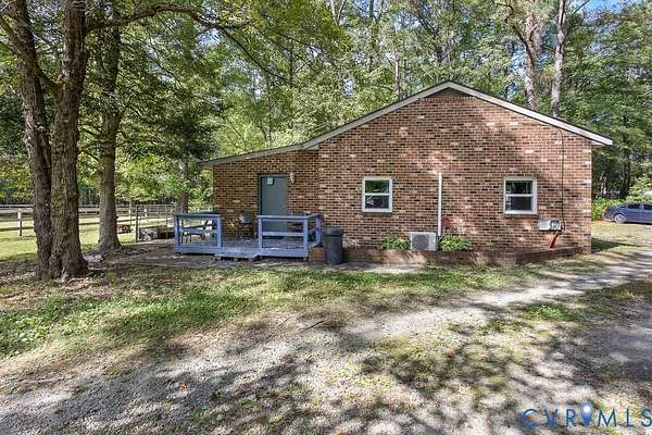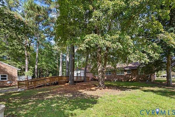 Charming 5-bedroom, 2-bath brick ranch home situated on a spacious 2.02-acre lot in Chesterfield County is ready for a new owner! Step inside to an entry foyer with new luxury vinyl plank flooring throughout most of the home. The living room, formerly used as bedroom #5, features a ceiling fan and built-in TV shelf. The kitchen offers white cabinetry, laminate countertops, white appliances, and new luxury vinyl tile flooring, flowing into the dining area with a bright bay window. The family room invites you to relax with new LVP flooring, a ceiling fan, and a wood-burning fireplace with a beautiful wood mantle. Step down into the attached den or sitting area with a hearth pad for a wood stove and access to a large 25x19 back deck overlooking the expansive backyard. The primary bedroom includes a ceiling fan, new LVP flooring, and an attached bath. Three additional bedrooms with new LVP flooring, ceiling fans, and ample closets share a hall bath with tub/shower combo and single vanity. A laundry closet with shelving and pull-down attic storage complete the interior space. Outside, a renovated detached building, formerly a 2.5-car garage, serves as a versatile hangout, fitness area, or workshop with endless possibilities. The property also includes a fenced area once used for horses, a chicken coop, and a detached metal shed. Recent updates include a new HVAC system (2025) and a newer hot water heater (2023). Conveniently located near shopping, dining, and entertainment, this home is a must-see. Adjacent land of 1.78 acres is also available. Schedule your private tour today!