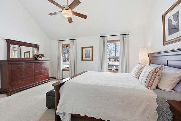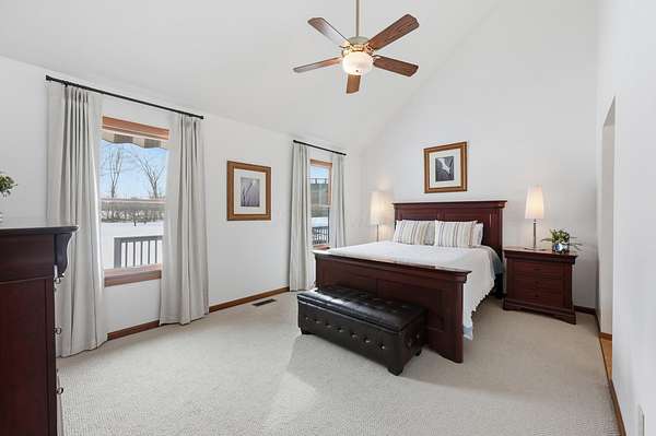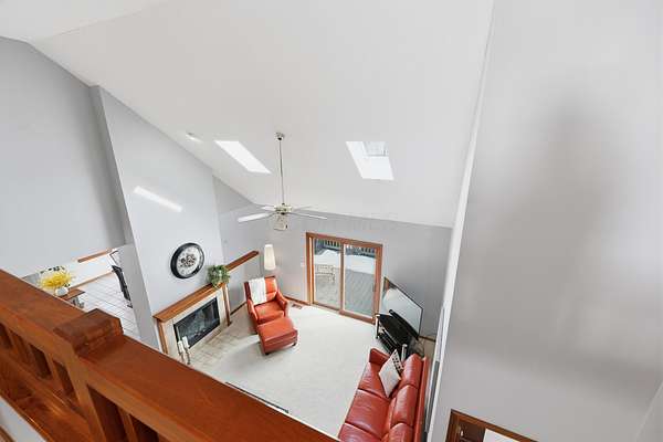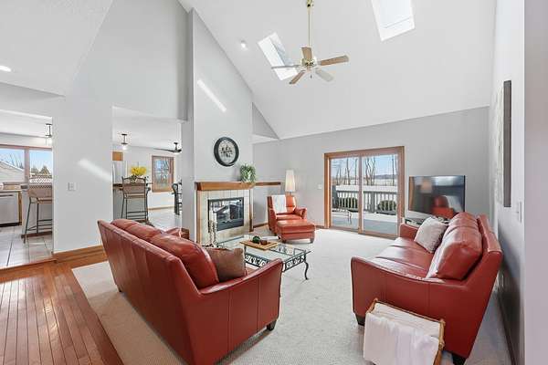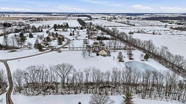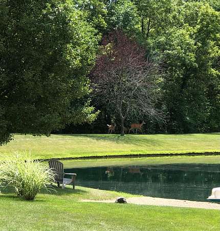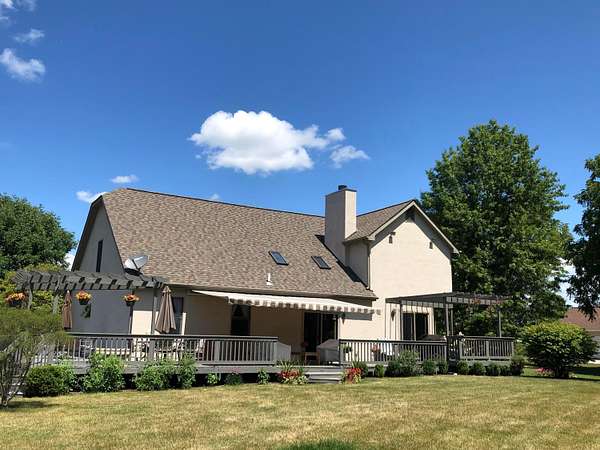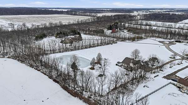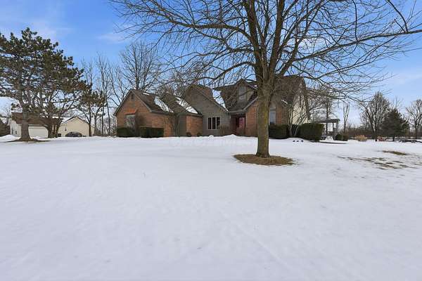Welcome to this exceptional two story home nestled on a stunning 4.3 acre private, tree lined lot complete with a beautiful 13 foot deep pond stocked with bass, bluegill, & grass carp. This peaceful setting offers the perfect blend of nature, privacy, and everyday comfort. Step inside the light filled two story foyer, which opens to spacious formal living and dining rooms that are ideal for entertaining. The dramatic great room features vaulted ceilings and a cozy two-sided fireplace, creating a warm and inviting gathering space. The large kitchen is designed for both function and style, offering granite countertops, a center island, stainless steel appliances, and an expansive eating area overlooking the scenic backyard. The first floor primary suite provides a relaxing retreat with vaulted ceilings and a spacious ensuite bath featuring dual vanities, soaking tub, and separate shower. Upstairs, you'll find three generously sized bedrooms all with large closets and a full hall bath. The finished lower level adds valuable living space with a recreation room and exercise area, perfect for today's flexible lifestyle needs. Outdoor living shines with a deck that spans the entire length of the home, offering incredible views of the private acreage and pond. Major updates include: New HVAC system, Roof (approx. 8 years old), Granite kitchen countertops, New well pump, and Epoxy flooring in the 3-car garage This rare property offers space, privacy, and modern updates all in a beautiful natural setting.