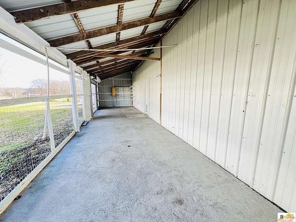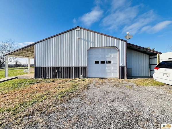Discover the perfect blend of country charm and modern convenience with this inviting 2-bedroom, 1-bathroom barndominium set on approximately 7.64 acres, featuring a welcoming kitchen/dining combo and a spacious family room. Thoughtfully designed for comfort and functionality, the home includes an attached garage for everyday ease, while a large detached garage with four overhead doors offers exceptional versatility for hobbies, equipment, or additional storage. Enjoy peaceful surroundings and scenic views from the covered front porch or the full-length covered back patio, all while benefiting from the privacy and freedom of rural living paired with practical, well-planned amenities--making this a truly rare and desirable opportunity Property also features a chicken coop and property is fenced for pets.