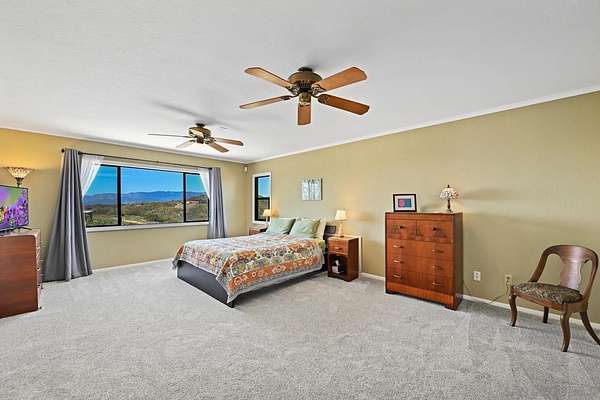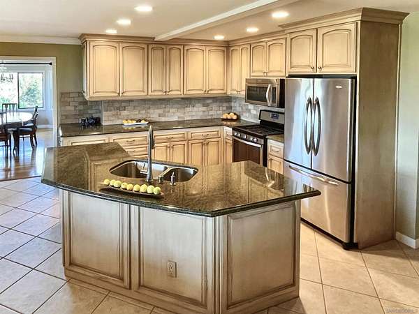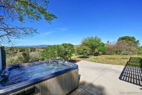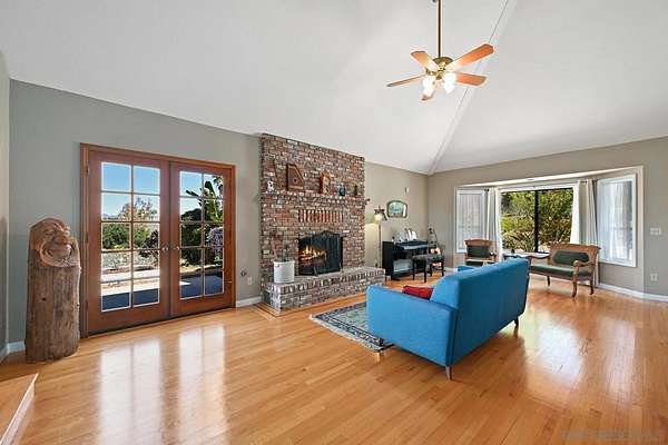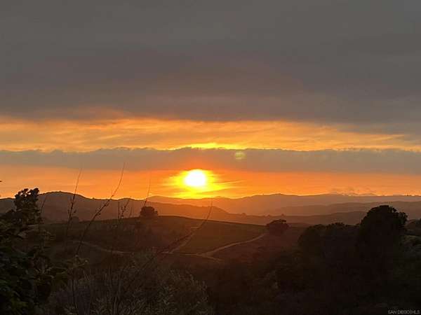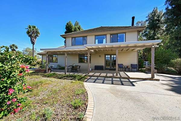 Beautiful 4 bedroom plus office custom home set on 4.23 spectacular view acres at the end of a peaceful cul-de-sac. This 2 story home offers privacy, sweeping views, diverse landscaping and a productive organic family fruit tree orchard which provides a continual variety of fruit. The property is immersed in nature while still being walking distance to Fallbrook's charming Main Street. Inside, the layout features a mix of formal and casual living spaces. The dedicated living room has soaring ceilings and a beautiful brick fireplace. An adjacent dining room is a highlight with its West and North views. The family room opens directly to the kitchen and has an efficient wood burning stove. This room also enjoys a wet bar with custom tile backsplash. The updated kitchen is designed for both everyday living and entertaining, complete with granite slab countertops, stainless steel appliances, a walk in pantry and lovely breakfast nook. The main level also includes a spacious office/den/library as well as a full bathroom. A convenient laundry room provides plenty of additional storage. The 2nd story with gorgeous views from every room features a large primary bedroom suite and 3 generous sized bedrooms with an additional full bathroom. Outdoor living is a standout feature with multiple areas to take in the stunning surroundings-including a covered back patio ideal for entertaining. The property includes a work/storage shed, a cute chicken coop and room for an RV. With abundant usable land, the property offers incredible flexibility for whatever vision you have in mind.