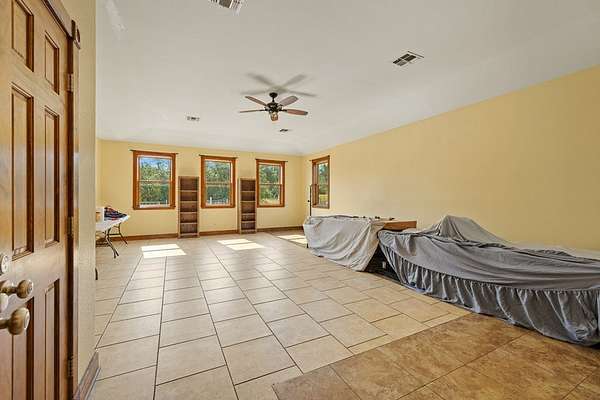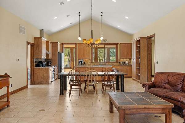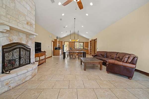 Discover this charming Hill Country-style home, built in 2011, nestled on 10 pristine acres of meticulously maintained land. The property is fully enclosed with a 7' high fence and features an electric gated entrance for privacy and security. This spacious 3-bedroom, 2-bathroom residence offers a warm and inviting atmosphere with a limestone wood-burning fireplace and a thoughtful split floor plan. Enjoy the tranquility through double-paned windows and the durability of a standing seam roof. The well-appointed kitchen boasts a stainless steel farmhouse sink, a large 4'x7' granite island, and custom oak cabinetry. All appliances convey. 12'x19' sunroom located directly off of the kitchen to watch sunsets each day with a separate mini-split unit. The dining area features a stunning Phil Jackson granite table that comfortably seats 8, which conveys with the home. The oversized master suite provides a luxurious retreat, complete with an en suite bathroom featuring a relaxing soaker tub, an extra-large shower with a built-in seat, and a walk-in closet that also serves as a panic room. The two car detached garage is 875 sq ft and is completely finished out with 2 - 10x10' storage rooms. STR permitted if the main home is full-time residence. This property perfectly combines rustic elegance with modern comfort, making it an ideal escape in the Texas Hill Country.