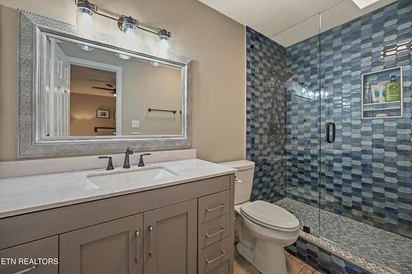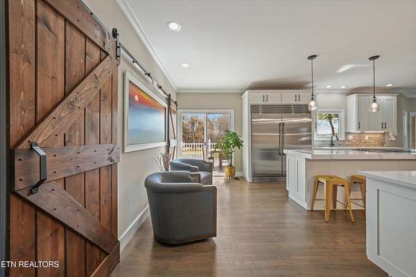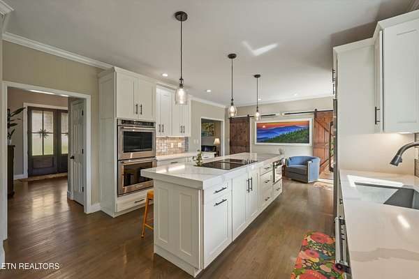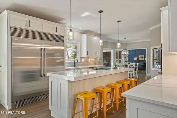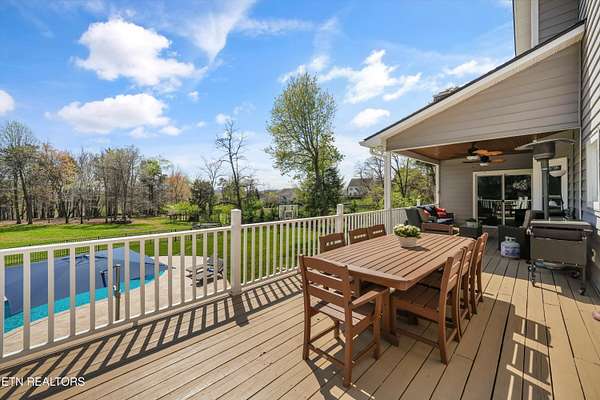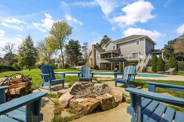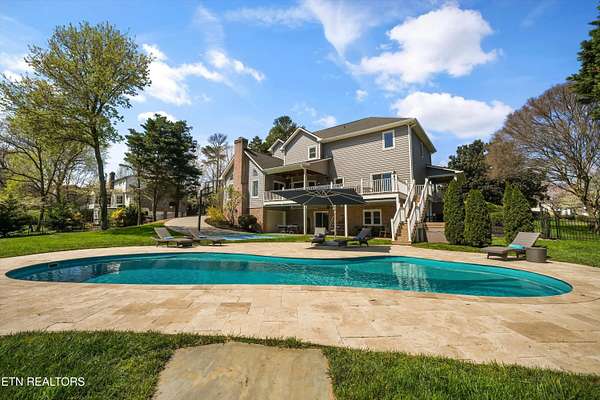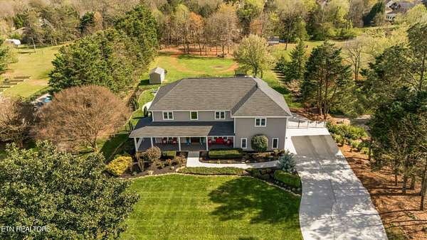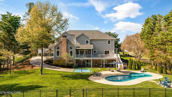 Rarely does a property offer this level of privacy, renovation quality, and resort-style outdoor living in Farragut. Situated on 1.85 wooded acres with no HOA, this fully transformed estate has been renovated with longevity and low-maintenance living in mind -- delivering both sophistication and peace of ownership. The heated saltwater pool, travertine terrace, and custom firepit create a private retreat that rivals boutique resorts, while the covered porch and elevated deck provide sweeping views of the tranquil backyard setting. Inside, the kitchen was designed for those who love to cook and entertain at scale -- double wall ovens, Electrolux side-by-side refrigeration, beverage station, and an expansive custom walk-through pantry elevate both form and function. The vaulted great room anchors the home with dramatic ceiling lines and expansive views. Four upstairs bedrooms include a spacious primary suite, while the lower level offers exceptional flexibility with a second entertainment space, wet bar, full bath, secondary laundry, and guest sleeping quarters. A rare combination of acreage, renovation quality, privacy, and lifestyle -- without the limitations of an HOA.