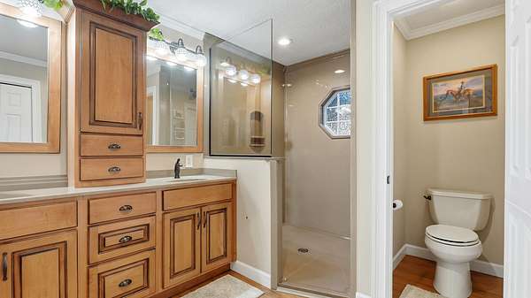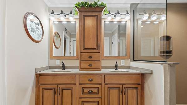 - Breakfast Bar, Breakfast Nook, Ceiling Fan(s), Double Vanity, Eat-In Kitchen, Granite Counters, High Ceilings, Pantry, Plumbed, Primary Downstairs, Separate Shower, Walk-In Closet(s)