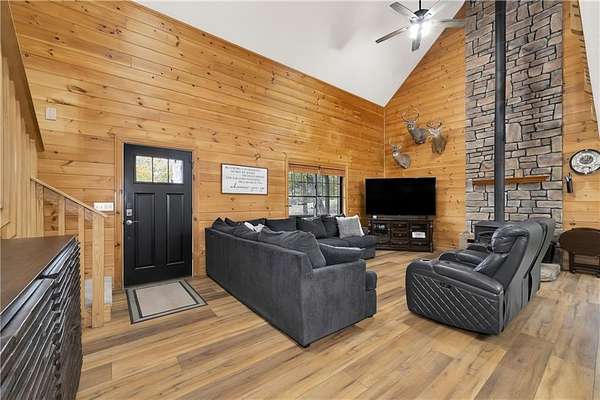 - Attic Storage, Built-Ins, Cathedral Ceiling, Ceiling Fans, Ice Maker Connection, Pantry, Smoke Detector, Walk-In Closets, Woodstove