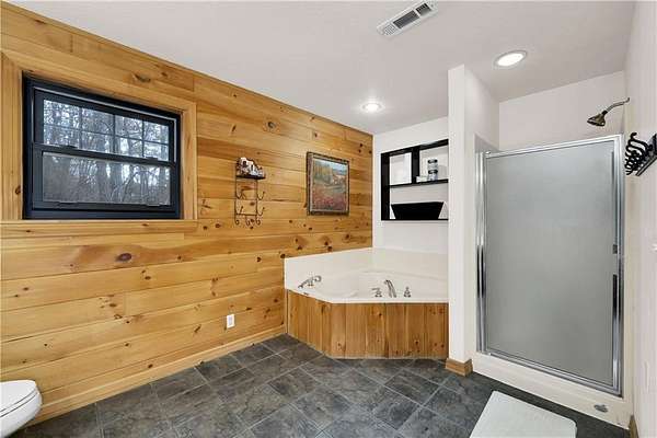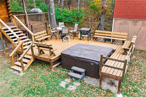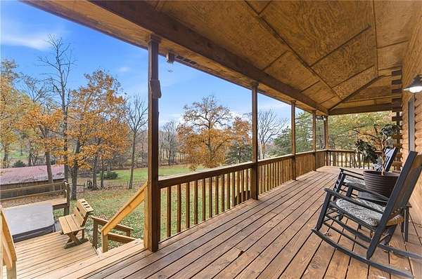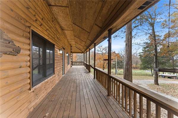 Custom log-sided home offers the best of rural living on 13.28 acres. Vaulted ceiling, loft and woodstove complement the open floor plan. Kitchen features granite counter tops and island, stainless steel appliances, pantry plus a mud room. Primary suite has large ensuite bath with dual vanities, jetted tub and separate shower and walk-in closet. Additional 2 bedrooms, guest bath and added storage complete the inside. Enjoy the country views from the wrap-around covered porch, princess balcony, pergola with firepit or deck with hot tub. Perfect for a hobby farm and/or nature enthusiasts with a mix of cleared pasture and woods. Plentiful wildlife with large pond, stocked with catfish, bass and perch and a creek. Great location only 10 minutes from downtown Fayetteville and less than 5 minutes to Drake Field, schools, restaurants and shopping. Located on a paved road with circle drive, storage building and pole barn. All electric with Ozarks Go internet, new water heater, updated flooring and Anderson windows.