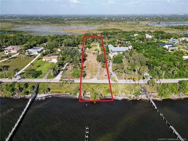 Welcome to your waterfront dream on scenic Indian River Drive! This rare 2-acre lot offers ~100 feet of direct Intracoastal frontage with wide-open views of the sparkling Indian River Lagoon and year-round ocean breezes. Perched on naturally high elevation, this homesite is the perfect canvas for a luxury estate, complete with room for a guest house, pool, gardens, and more. Launch your paddleboard, kayak, or fishing line from your private shoreline-or rebuild the dock for easy boat access to the Atlantic. Located in St. Lucie County, just 2 miles from the laid-back charm of downtown Jensen Beach and under 10 minutes to the sandy shores of Hutchinson Island. No HOA, zoned residential, and surrounded by lush tropical beauty, this property combines peaceful seclusion with unbeatable location. Whether you're building a serene retreat or a show-stopping waterfront compound, this is your chance to live the Treasure Coast lifestyle to the fullest!