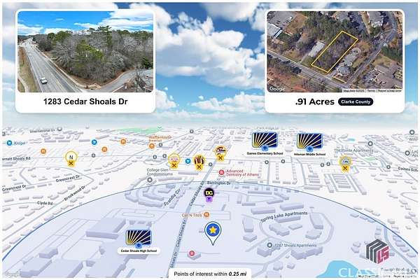 From Downtown Athens, slight right onto Oconee St. Go 1.4 miles and turn right on Barnett Shoals Rd. Take Barnett Shoals 1.8 and turn left on Gaines School Rd. Go 0.3 and turn right on Cedar Shoals Dr. Property is .03 miles on the left. It is across from Cedar Shoals High School.
