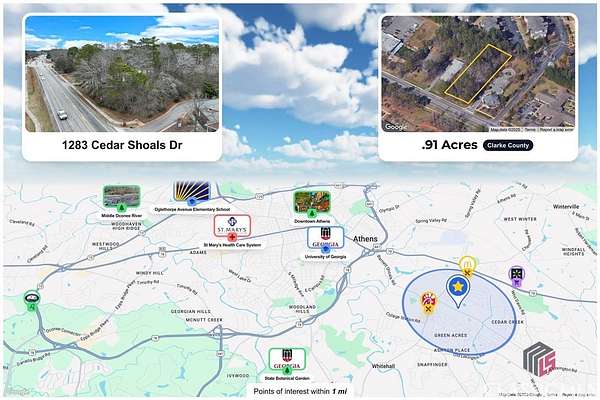 Est $893/mo0.91 acre Commercial lot in a GREAT LOCATION on Cedar Shoals Drive in front of the High School. HIGH traffic area! Lot is zoned C-O. LOTS of possibilities, as this lot is surrounded by income producing commercial properties. Per the GA DOT traffic analysis in 2023 there were 8320 cars that drive by this property daily.