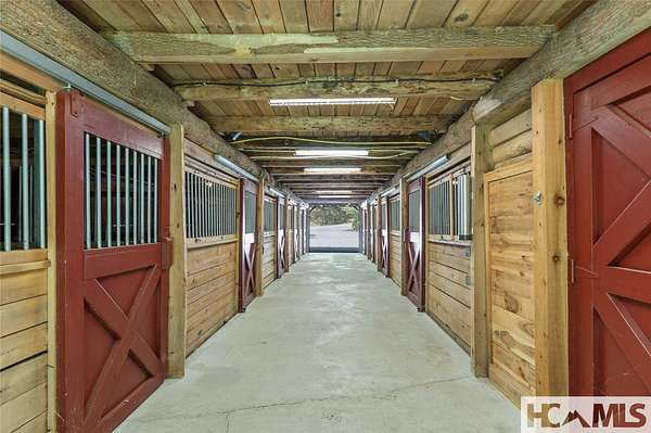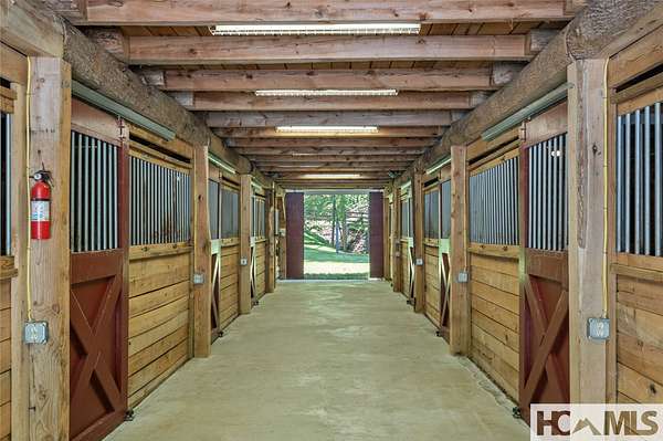 Welcome to Leafstone Farms, an extraordinary 60.23-acre estate nestled within an exclusive, high-elevation community near Western Carolina University. This remarkable property offers endless possibilities, including use as a private estate, equestrian haven, family compound, or residential development. The centerpiece of this property is a stunning custom-built structure with a well-appointed climate-controlled apartment suite, including a large primary bedroom with an ensuite, a full kitchen, and a dining area, ensuring both comfort and convenience. This structure also offers a fully finished multi-purpose seven-bay hobby workshop or storage area that will be the envy of all who see it. Adjacent to the main building, you'll find a free-standing log barn equipped with nine horse stalls on the ground level and a spacious loft entertainment area in the barn, with two bonus rooms, and a full bathroom - an ideal place for leisure activities and gatherings. This estate is designed to accommodate various lifestyles - from equestrian enthusiasts to RV living, hobbyists, and families seeking multigenerational spaces. Significant investment in infrastructure that is already in place, including a well-constructed road system with county-grade culverts and drainage for effortless navigation, approximately 1.5 miles of custom equestrian fencing, a hay barn, and a firewood preparation and storage area. Despite its tranquil and secluded setting, Leafstone Farms is just minutes away from the vibrant downtown Sylva and Western Carolina University, providing the perfect blend of peace and accessibility. Reasonable restrictions are in place. This property represents a once-in-a-lifetime lifestyle opportunity just waiting to be embraced!