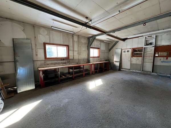 Versatile Commercial Property on Main Street - Hartford Located on Main Street in Hartford, this unique property sits on just over 3 acres of flat, usable land on both sides and behind the building. Originally built as a school and later used as an auto repair shop, the building has served a variety of purposes over the years and is now cleaned out and ready for its next chapter. The structure features a large 10' x 9.5' garage door for easy access, making it ideal for storage, workshop space, or a variety of business opportunities. A small addition at the rear of the building offers extra flexibility. The property is equipped with a hot air K-1 furnace for winter, and the insulated walls make it useable all year. The lot offers excellent potential with its level terrain and open space. A white fence and several apple trees along the roadside provide curb appeal. Whether you're looking for garage space, storage, or a place to bring your vision to life, this property is worth a look. The possibilities are endless.