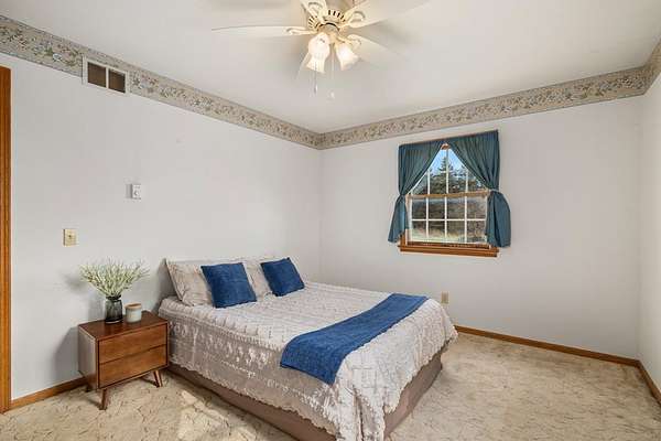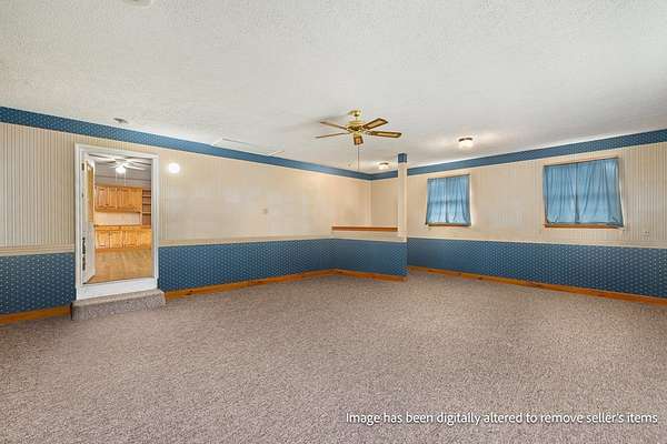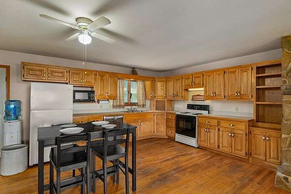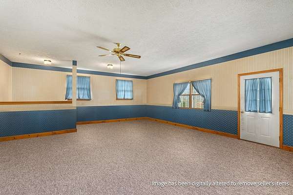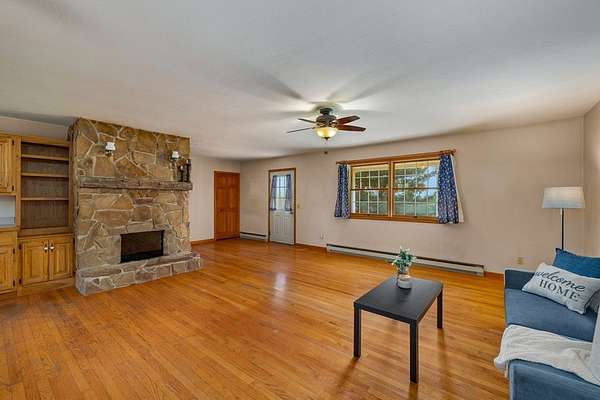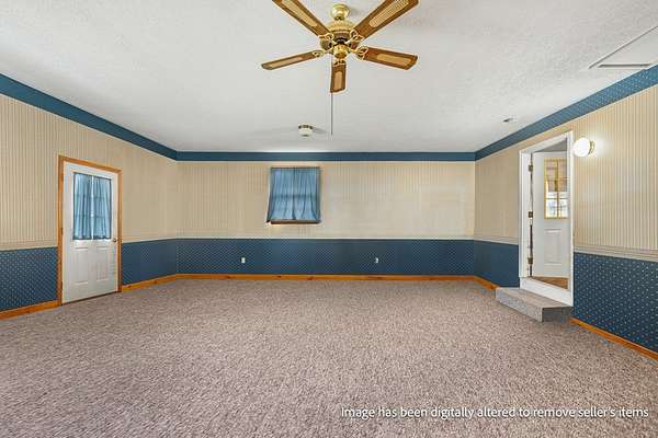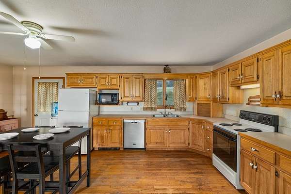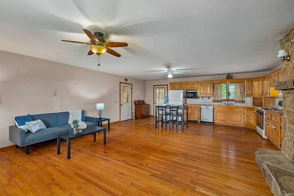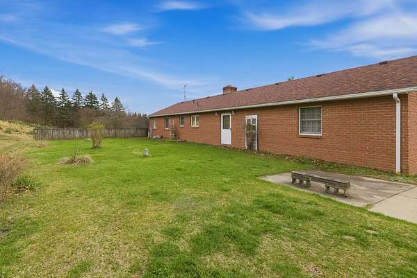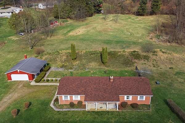 Spacious 3-bedroom, 2.5-bath home situated on 5 beautiful acres! This property features a large family/great room perfect for gatherings, along with an open-concept kitchen, dining, and living area complete with hardwood floors and a fireplace. The master bedroom offers a private bath for added comfort. Additional half bath in the basement. Enjoy peaceful country views from the large open front porch. A detached garage/outbuilding provides ample storage or workspace. A perfect blend of space, comfort, and scenic surroundings!