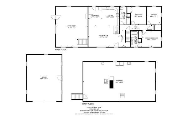 - Basement, Bathroom x 3, Bedroom x 3, Dining Room, Family Room, Great Room, Kitchen, Living Room