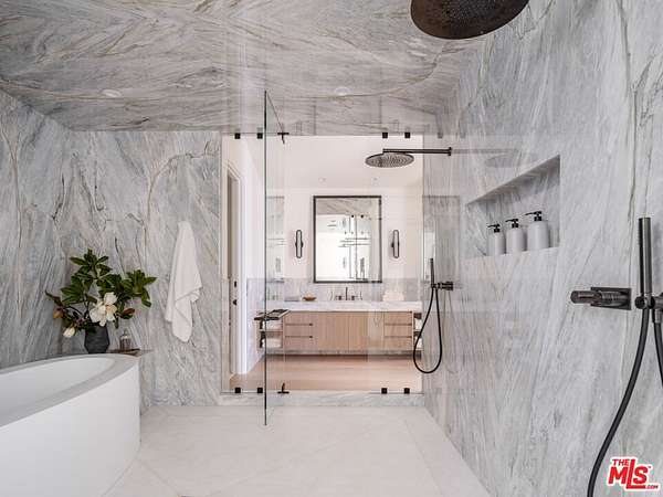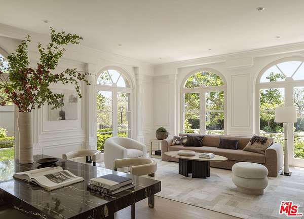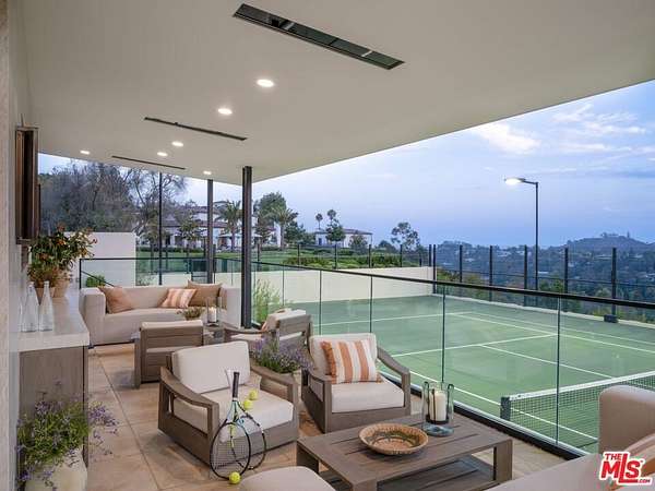 PRICE REDUCTION! $49,500,000. The Westside's most exclusive offering - a rare and exciting opportunity to acquire the only completely redone tennis estate in the ultra-private enclave of Brentwood Country Estates, the guard-gated community of just 13 homes known for its unmatched 24/7 security, privacy and gorgeous views. Gracefully sited on its own five acre promontory, behind its own gates, this truly one of a kind property, completely reimagined and redesigned, is offered fully furnished, ready to welcome you without delay. When you arrive, you are overtaken by a sense of serenity, peace and calm. Taking your first breath of the mountain air, you can feel yourself starting to relax. Where else west of the 405, can you live in your own five star resort and enjoy the low key comforts of home? A "welcome home" lounge area is the first "Oh wow" moment, leading through the property to the many curated outdoor areas, each providing private spaces for different ways to enjoy the ultimate California lifestyle. The gorgeous pool and spa invite you to luxuriate in the afternoon sunshine. Surrounding the pool, the expansive lawn offers a fun putting and chipping green. Beyond through the olive tree lined walkway is a sunken and lit tennis court, easily converted for pickleball and basketball, with a viewing pavilion complete with its own changing room and bath. The property is beautiful during the day, but in the evening it absolutely glows with gorgeous lighting and music everywhere. The approximately 9960 square foot interior is filled with natural light and stylish sophistication. The sightline of the entry hall previews great things to come, and it does not disappoint. The entry leads to the formal living room and expansive dining room, flanked by a beautiful office all with floor to ceiling windows offering views of the perfectly manicured grounds. The heart of the home is the chef's kitchen with a spacious breakfast area with its own big screen TV, temperature controlled wine room, and oversized island, with all the best high end appliances, double Wolf range, double side by side Dacor refrigerators, three sinks, and "they thought of everything" butler's pantry. Right outside the kitchen facing the mountains, through two sets of French doors, the barbecue and outdoor dining areas provide the perfect venue to gather under the stars and watch the moonrise. Adjacent to the kitchen is a fabulous family room, designed for pool, backgammon or just hanging out until dinner is ready. Motorized black-out drapes can convert this space for snuggling up on a comfy sectional to watch your favorite movie. The first level also features a large guest suite, and commodious laundry room with double appliances, a mud room and plenty of storage. On the second level, the dreamy primary suite offers a sanctuary with peaceful views to the sky and mountains, reminiscent of your last great trip to Tuscany or Provence. Tons of mirrored closets and built-ins separate the two sides to the bath area, connected by a distinctive wet room double shower and tub. Three additional ensuite bedrooms provide comfort and privacy for guests or family, and a fully equipped gym completes the upper level. The entire home is powered by a state-of-the-art Crestron smart system, offering seamless control of lighting, music, climate and security with cameras everywhere. In addition to the oversized three car garage, the circular motorcourt is large enough to accommodate ten cars. Located in lower Mandeville Canyon, Brentwood Country Estates, provides easy access to Santa Monica, and other areas of the Westside, with wonderful restaurants, shops, hiking trails, golf and the beach minutes away.