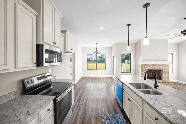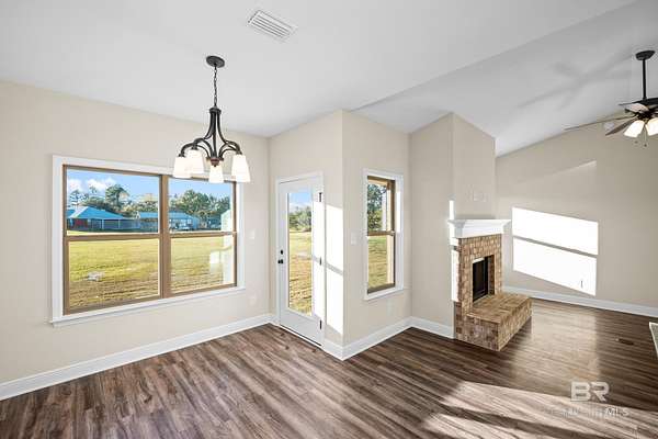 If you've been dreaming of a brand-new home on land -- look no further! This beautiful dream home is ready for you. Perfectly positioned on a corner lot with two acres, this property offers plenty of space and privacy, plus a four-car garage for all your storage or hobby needs. Step inside to find luxury vinyl plank flooring throughout the main living areas and 9-foot ceilings that make the space feel bright and open. The spacious living room features abundant natural light and a cozy wood-burning fireplace, flowing seamlessly into the eat-in kitchen. The kitchen offers painted cabinetry, granite countertops with bar seating, and stainless steel appliances. The split floor plan ensures privacy, with the primary suite tucked off the living area. The primary bedroom includes a double-granite vanity, walk-in shower, and a large walk-in closet. Three additional generously sized bedrooms provide plenty of room for family or guests. Enjoy peaceful country living while still being close to town conveniences -- this one truly has it all! Buyer to verify all information during due diligence.