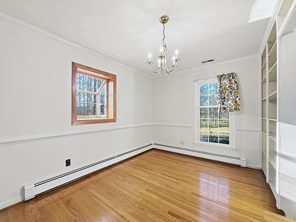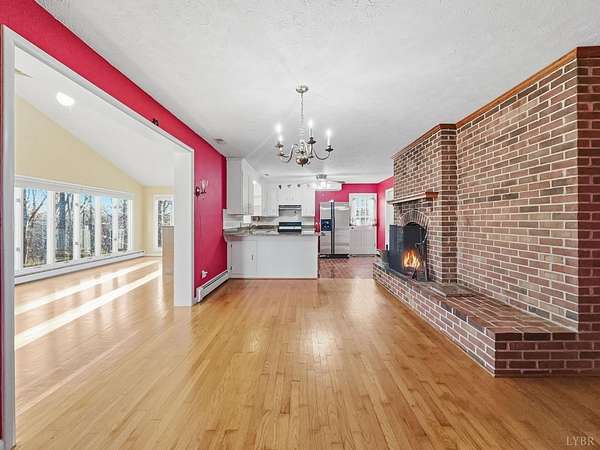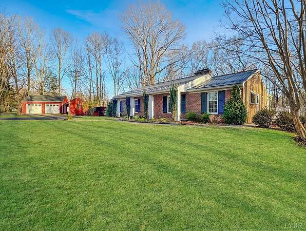 Remarkably well-maintained brick ranch with almost 3,000 sqft of living space on a large 3.12 acre lot. This 3 bedroom, 3 full bath home features a stunning vaulted ceiling sunroom looking out to a private wooded back yard. Fireplaces in the living room, in the eat-in kitchen, and one on the terrace level with a gas log. The high-end standing seam metal roof is made of special material that does not get hot in the sun. Custom granite countertops throughout the kitchen and main level bathrooms. The primary suite offers private access to the back deck. All 3 bedrooms closets have custom cedar shelving. Just off the kitchen is a side entrance to a grilling deck. Never go cold with the toasty radiant heat or use the heat pump. Detached 2 car garage offers coded access and a walk out door. Circle driveway. The front porch has a winter time view of Tobacco Row Mtn. Schedule a showing now to see the many blooming daffodils and the yellow forsythias lining the road.