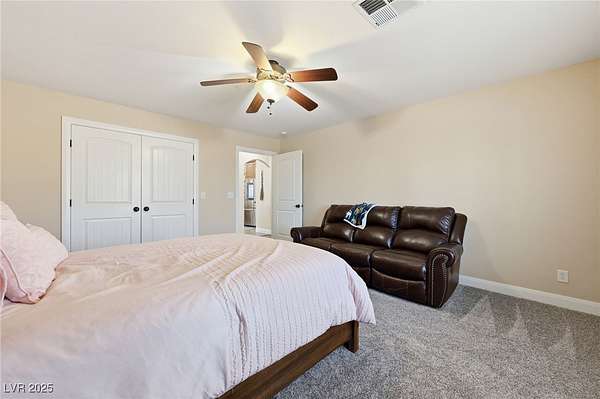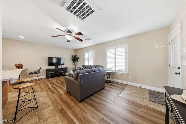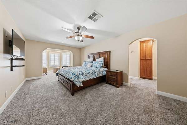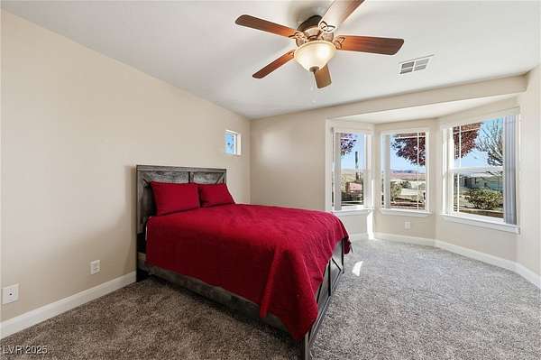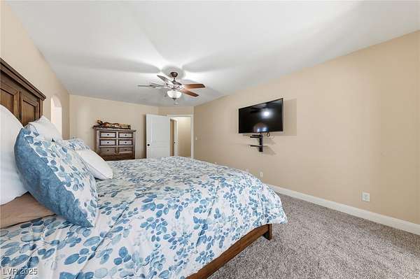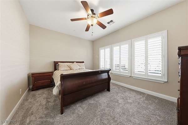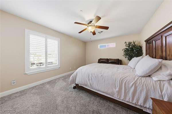 - Bedroom On Main Level, Ceiling Fan(s), Primary Downstairs, Window Treatments