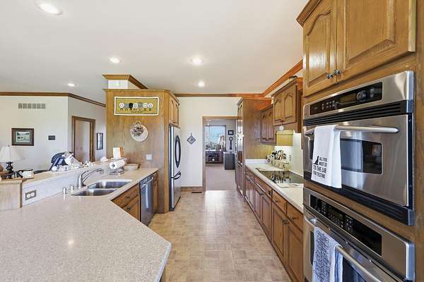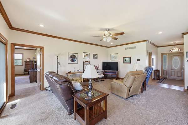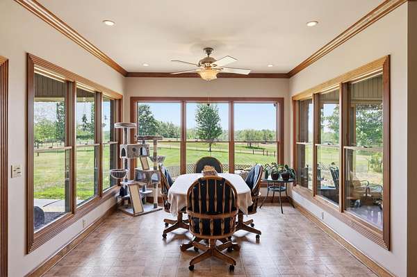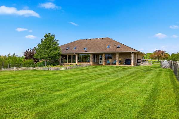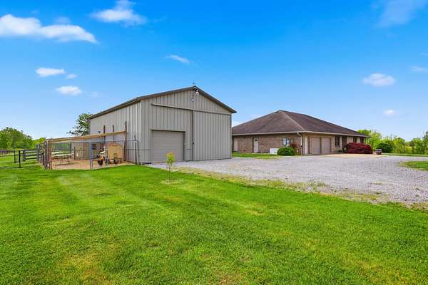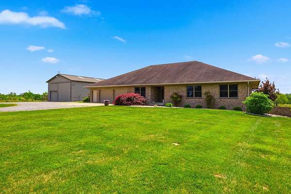 Custom Brick Home with Acreage - Experience the perfect blend of craftsmanship, comfort, and country living with this stunning custom-built brick home nestled on 25.7 beautiful acres in North Mercer County. This thoughtfully designed 3-bedroom home features 2 full bathrooms with walk-in showers, plus 2 convenient half baths. The spacious primary suite offers two walk-in closets, providing ample storage and functionality. Inside, you'll find 9-foot ceilings, elegant finishes, and custom cabinetry with hard-surface countertops throughout, creating a refined yet welcoming atmosphere. The 2 1/2 car garage provides lots of space to store and protect your vehicles, plus has a washer and dryer ideal for work clothes and pet accessories. Enjoy the outdoors year-round with a bright 3-season enclosed porch, plus there is a large covered rear porch that overlooks the lush acreage-perfect for relaxing or entertaining while taking in the scenic views. The full unfinished poured concrete basement offers incredible flexibility, already equipped with an enclosed dog grooming room, a roll-up door and a walk-through door, making it ideal for hobbies, workspace, or easily converting into additional living space. Other property highlights include a 30' x 50' Morton building with concrete floor and electric, a whole-house generator for peace of mind, and zoned heating and air for efficiency and comfort. You're sure to enjoy the mature apple trees, apricot tree, and concord seedless grape vines. With its combination of quality construction, versatile space, and expansive acreage, this property offers endless possibilities-whether you're seeking a private retreat, hobby farm, or place to grow. Conveniently located in North Mercer County with easy access to surrounding areas, this is a rare opportunity to own a truly exceptional property.