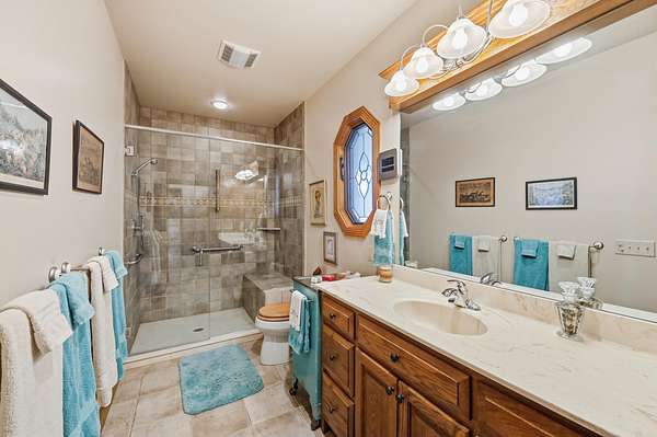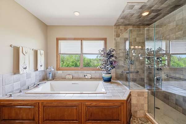 - Breakfast Bar, Ceiling Fan(s), Eat-In Kitchen, Entrance Foyer, Primary First Floor, Soaking Tub, Walk-In Closet(s)