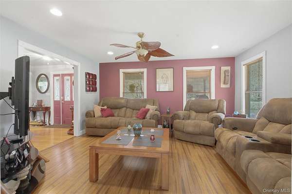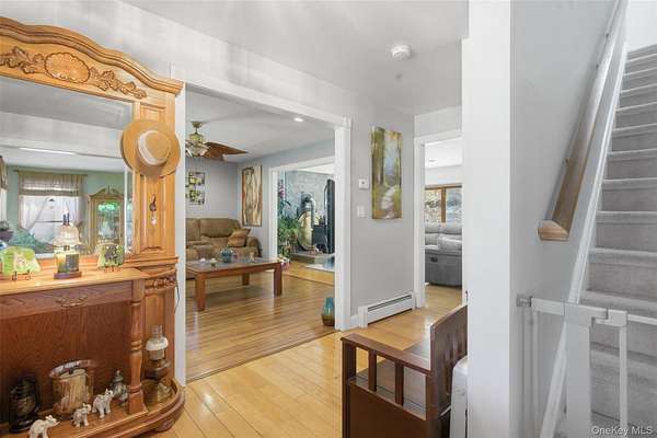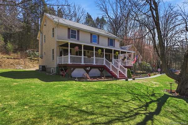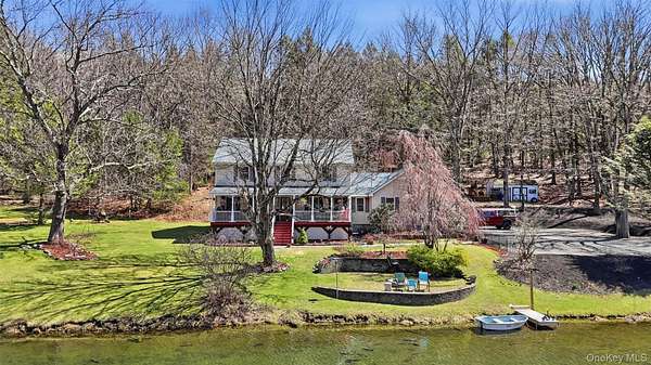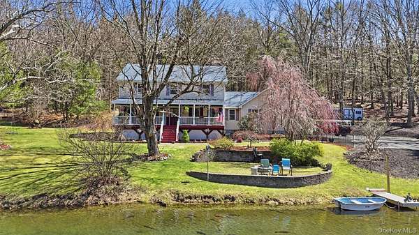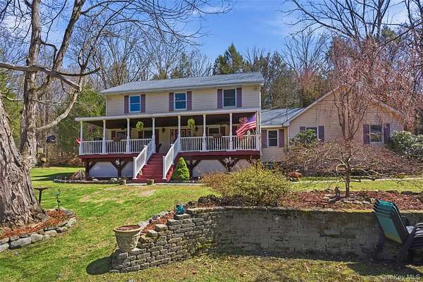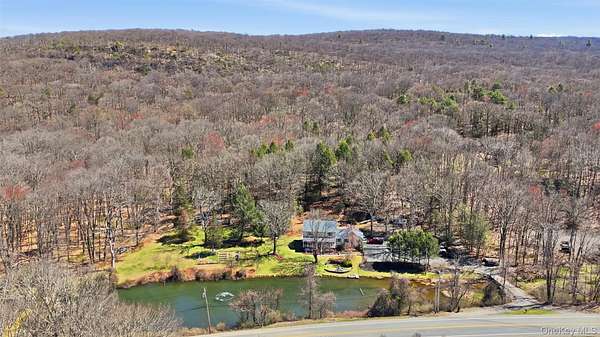 Tucked away on over 20 private acres in Monroe, NY, this rare Hudson Valley property offers the space, privacy, and natural setting that buyers searching outside the city have been waiting for. The property features a private pond, open lawn areas, mature trees, and a long setback from the road, creating a peaceful setting while still being within convenient distance to major highways, shopping, wineries, orchards, and year-round recreation. The home is a classic 4-bedroom, 3-bath Colonial with approximately 2,372 square feet of living space, offering a flexible layout with multiple living areas, a country kitchen with eat-in space, formal dining room, and a covered front porch overlooking the water. The finished basement provides additional usable space for recreation, office, or storage. Outside, the land offers a unique combination of open and wooded acreage, private pond frontage, garden space, fruit trees, and outbuildings, making the property ideal for those looking for a country retreat, full-time residence, or potential multi-use estate setting. Located approximately one hour from NYC, this property offers a rare opportunity to own a large parcel with water, privacy, and usable land in Orange County. Shown by appointment only.