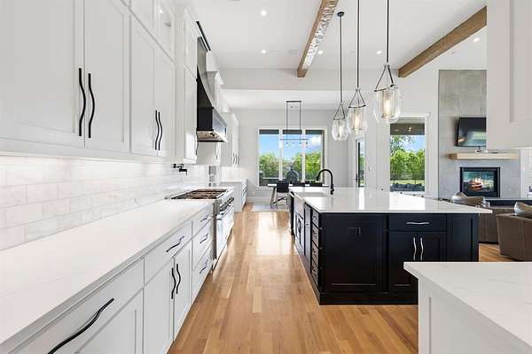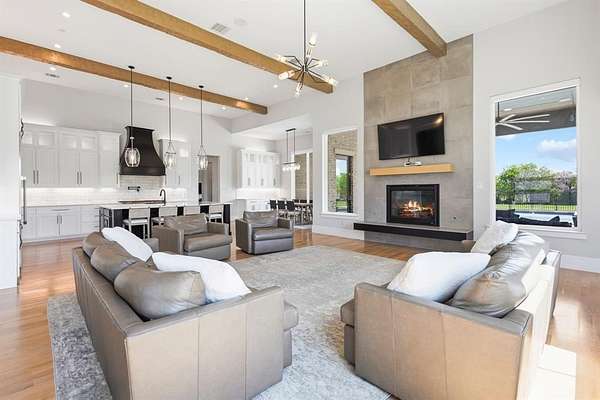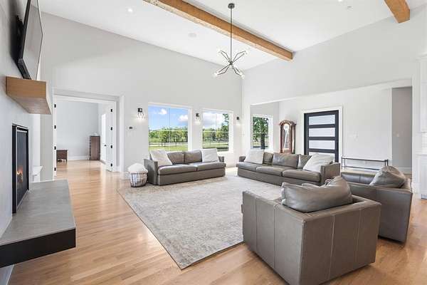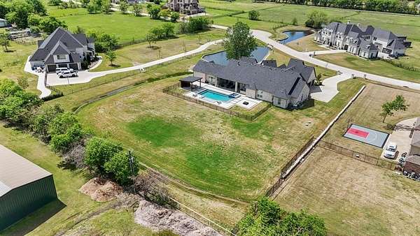 Situated on approximately 2 beautifully landscaped acres, this exceptional single-story custom estate offers a refined blend of luxury, technology, and natural beauty. A fully stocked private pond with a fountain, positioned at the front of the property, creates a striking first impression and a serene setting that immediately sets this home apart. Inside, the thoughtfully designed open-concept floor plan showcases soaring ceilings, expansive windows, and light-filled living spaces ideal for both everyday living and elegant entertaining. The chef’s kitchen is the heart of the home, featuring a large center island, a separate prep kitchen, and a spacious walk-in pantry, all seamlessly connected to the inviting family room anchored by a fireplace. The residence offers five spacious bedrooms, including a luxurious primary suite designed as a private sanctuary with a spa-inspired bath featuring a soaking tub, an oversized walk-in shower, and an expansive custom closet. Additional living spaces include a game room, media room, and dedicated kids’ retreat, providing versatility for both family living and entertaining. A private study offers a quiet and refined work-from-home environment. Outdoor living is equally impressive, featuring a covered patio with a fireplace overlooking the resort-style pool and a charming gazebo, creating an ideal setting for year-round enjoyment. The home is also equipped with a Control4 smart home entertainment system and Luma security camera system, providing seamless technology and security throughout the property. Additional amenities include a formal dining room, mudroom, utility room, and a three-car garage, along with two 1,000-gallon propane tanks supporting the home’s energy needs. Located in the highly acclaimed Lovejoy ISD, this remarkable estate offers the perfect balance of luxury, privacy, and convenience, just minutes from premier shopping, dining, and Highway 75.