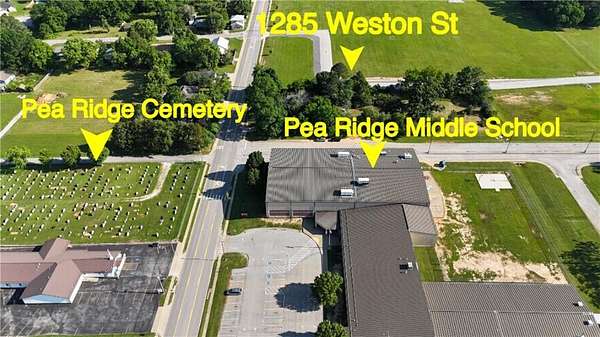 l-49 to Exit 88 turning East on Hwy. 72 E-to Weston St. (appx. 9.6 miles) & turn North-Land has a house and is the next driveway on Left past Pea Ridge City Hall and outbound driveway from the school.