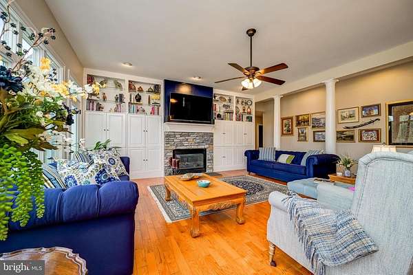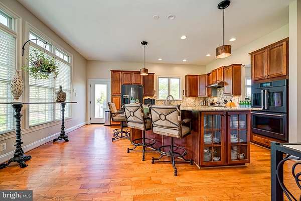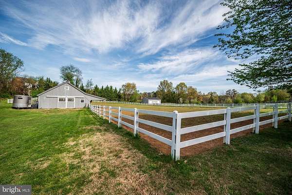 Welcome to Highland and discover this magnificent property peacefully nestled in a beautiful rural setting minutes from the crossroads of convenient grocery, restaurants and services. Accessed by a private lane to paradise, this custom home is situated to embrace an impressive entrance and to frame a beautiful rear view of the property, barn, stable and fenced paddock. The full front porch wraps to the left porch gazebo and the main entrance welcomes to the 2-story foyer. 10 ft. ceilings on the main level; flanked by the formal DR and office onto the grand family room with full wall to wall built-in cabinetry and shelving framing the stone gas FP. Enjoy the wall of windows and appreciate the multiple accesses to the rear deck. The gourmet kitchen joins the FR with natural cherry cabinetry, granite counters, tile backsplash, generous curved island and breakfast bar, impressive chef's grade double ovens, gas cooktop, French door refrigerator w/freezer drawer, dishwasher, all in fashionable black stainless finish. Mud/laundry room with counter, sink and cabinetry for storage. Bedroom wing offers secondary main level suite with ensuite bath; separate vanities, w/c, soaking tub, walk-in shower and massive walk-in closet-perfect for multi-generational living. Access the second level via the main or rear staircase. The upper level reveals the main primary suite with sitting area, full bath with whirlpool tub, w/c, separate vanities and walk-in shower, additional massive walk-in closet complete with cabinetry. Both ensuite baths have heated floors, stone, granite or marble surfaces. Upper two additional bedrooms share a hall bath with double vanity, granite counters and tub/shower. Each bedroom is extremely generous with ample closet storage. Additionally, the upper-level great room provides opportunity for secondary office/homework station space and entertainment options; framed by two dormer windows and vaulted ceiling. The walk-out partial daylight LL with rough-in awaits your needs and vision. The property boasts an outstanding garden and home is framed by specimen quality trellis flowers that bloom throughout the growing season. Enjoy the personal orchard producing apricots, apples and peaches. Expansive Trex deck to enjoy the view of the 2-stall barn and paddock. The Amish built barn includes tack/hay and equipment storage, loft and tractor garage connected to electric and running water. Plus 2 stalls open to the L-shaped paddock with solid wood board PVC wrapped fencing. Schooley Mill Equestrian ring park nearby and trailer access to miles of trails in Maryland State Parks skirting Western Howard County. No HOA, ideal space for your favorite hobby, in-home business or farmette-horses, sheep, goats or chickens-everyone loves fresh eggs!! Hardwood floors and Andersen windows.  River Hill HS, Lime Kiln MS and Dayton Oaks ES. Minutes to major commuting routes; central to Baltimore and DC markets with easy access to BWI. Welcome Home!!