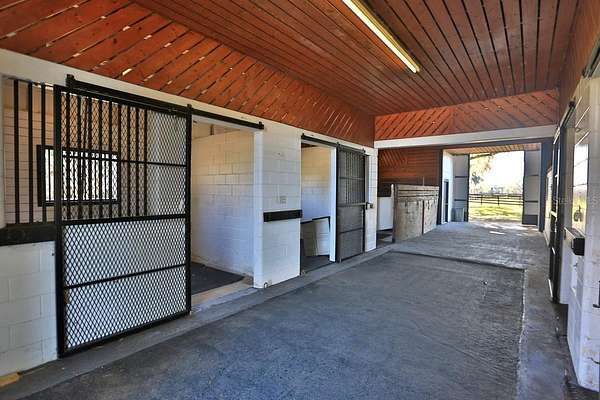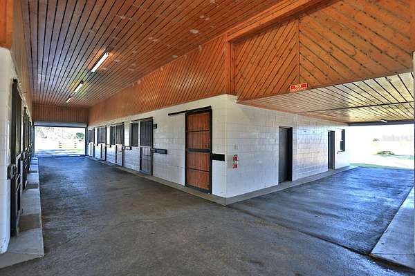 Mature shade trees, lush green pastures, and gently rolling land, this property provides an idyllic setting for equestrian enthusiasts and those seeking a tranquil rural lifestyle. The extensive equestrian amenities include: Three Well-Appointed Barns: An impressive 18-stall show stable complete with two grooming stalls, an office, tack and feed rooms, a laundry room, an outdoor sitting area, and an upstairs 1-bedroom, 1-bath apartment. It is located adjacent to the grass jumping ring, the lit sand ring, the Eurosizer, round pens, and the turnout paddocks. A second barn featuring 23 stalls, a grooming stall, wash stalls, and a comfortable 3-bedroom apartment. A third barn features 6 stalls, an outdoor wash stall, and an efficiency apartment to accommodate your horses perfectly.