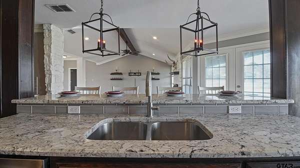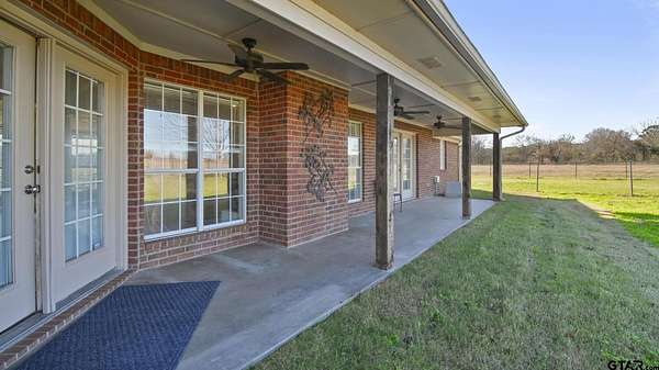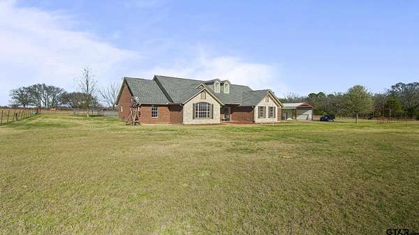 Looking for a home in the country with acreage? This beautiful 3-bedroom, 2-bath home sits on nearly 10 acres and offers plenty of room for livestock and horses. The property features cross fencing, a pond, and multiple barns, including a 6-stall barn with water and electricity, a pole barn in one pasture, and a separate workshop with a two-car carport and its own entrance. Inside, the home offers an open floor plan with a stone fireplace and granite countertops in the kitchen. The primary suite features a tray ceiling, French doors leading to the back porch, and an en-suite bath with a freestanding soaking tub and a separate tiled shower with pebble flooring. New carpet was installed in all bedrooms in 2025. The fully fenced backyard, corner lot location, and move-in-ready condition make this property a rare find for country living.