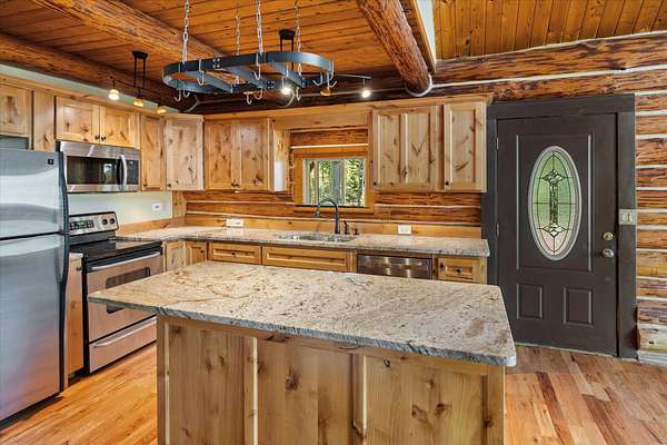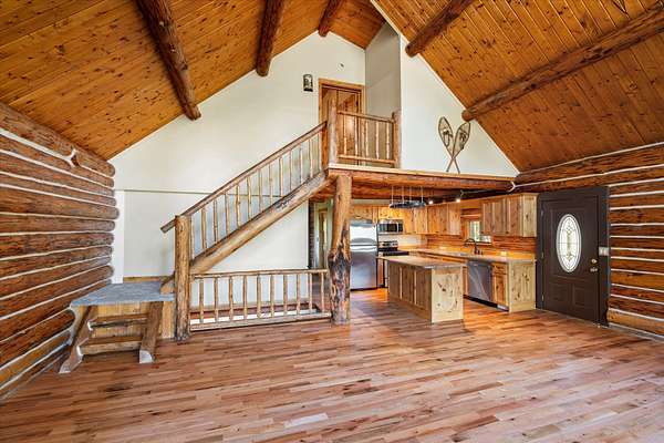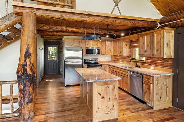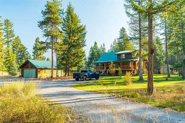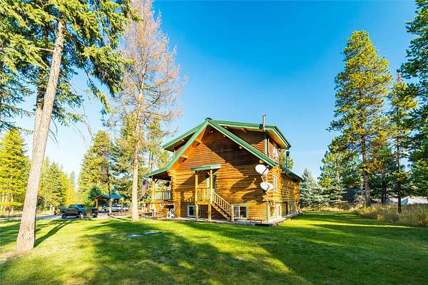 This handcrafted log home on just over 2 acres offers the perfect blend of privacy and beauty for anyone looking to make Bigfork, Montana their home. With 4 bedrooms, 2 bathrooms, 2 living areas, a wood stove, vaulted ceilings, beautiful wood trim, hard wood floors, and brand new carpet this home is move-in ready. Hardwood floors were refinished, carpet updated, and main level bathroom upgraded last September. The exterior boasts a 2 car detached garage, 2 sheds, a gazebo, an RV shelter and a beautiful yard space. With private HOA access to two Homeowners Parks on Swan Lake/ Swan River, this property has recreational fun for the whole family. Located just 10 minutes from downtown Bigfork and one hour from Glacier National Park. Easy to show. Audio & visual cameras on property.