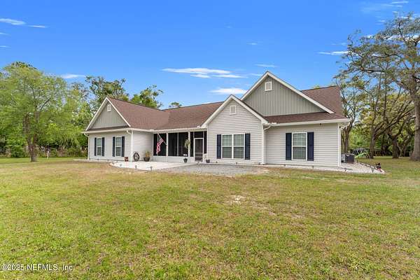 Escape to your own private oasis with this pristine 4-bedroom, 3-bath estate nestled on almost 5 acres in the serene countryside of North Jacksonville, near Pumpkin Hill Creek Preserve State Park. Bring your boats, RVs, chickens, and horses. This nearly new home was custom built with a thoughtful floor plan and upgrades. Enter through the new screened-in front porch to spacious main living and dining areas. The gourmet kitchen features stainless steel appliances and plenty of granite countertop space ideal for cooking and entertaining. In addition to the bedrooms, a versatile flex space adds even more potential--perfect for a playroom, media room, gym, or studio tailored to your lifestyle. Located just minutes from shopping, dining, and the conveniences of city life, yet tucked away in a tranquil setting, this is a rare opportunity to own a slice of country paradise without sacrificing accessibility. Luxury. Privacy. Space. Flexibility. This NE Jax gem has it all!