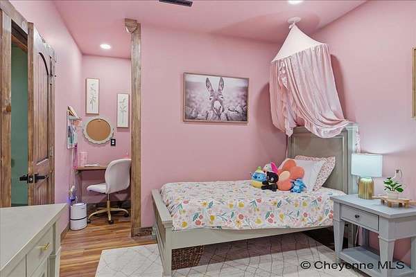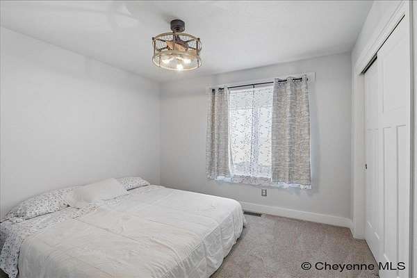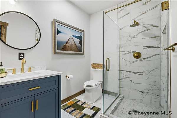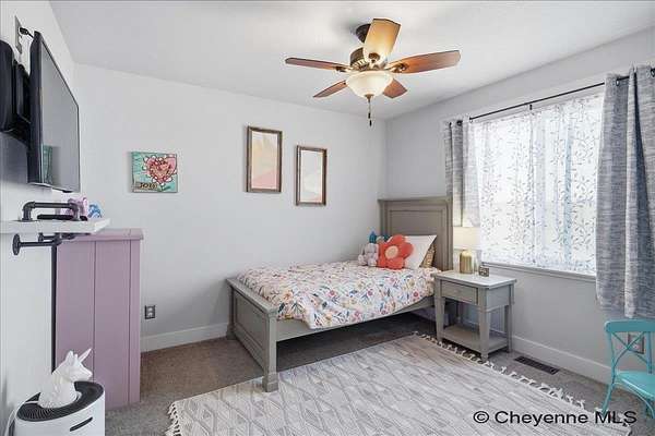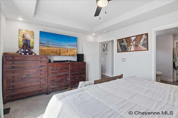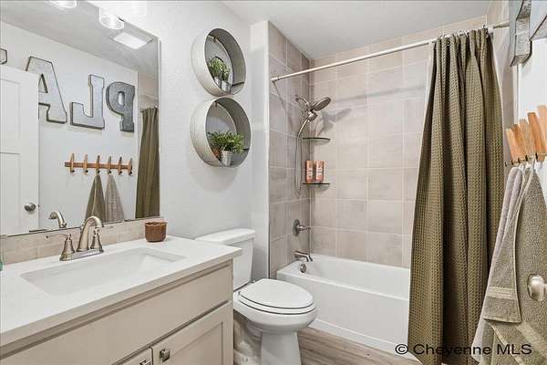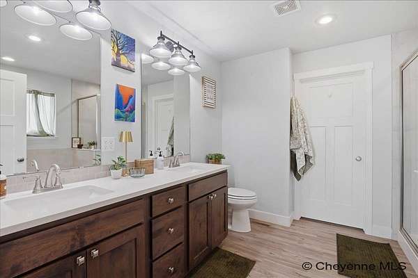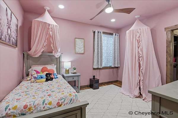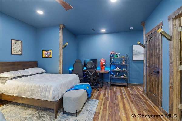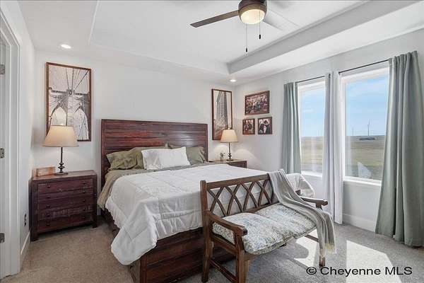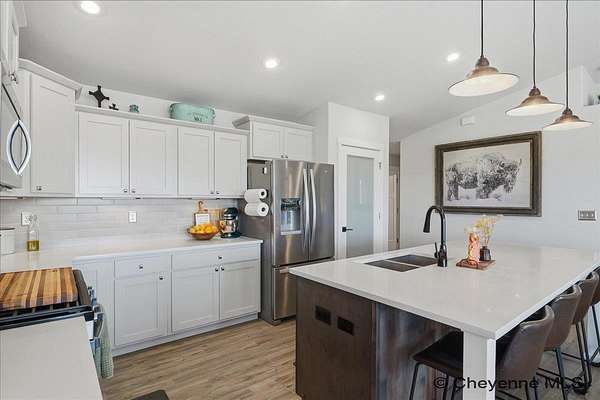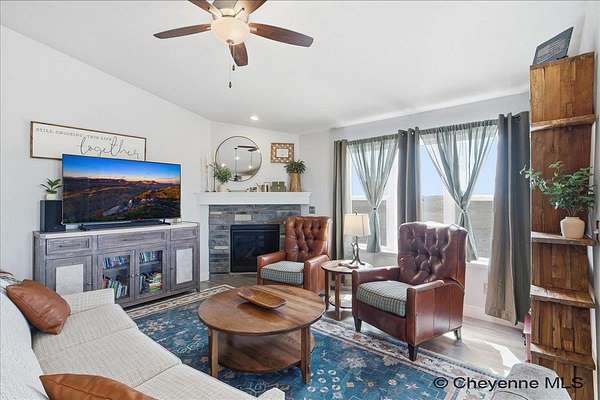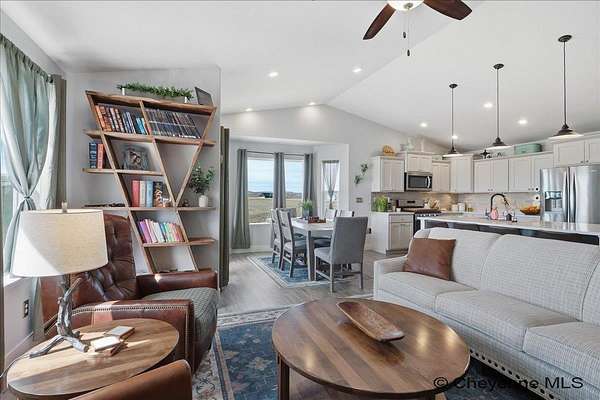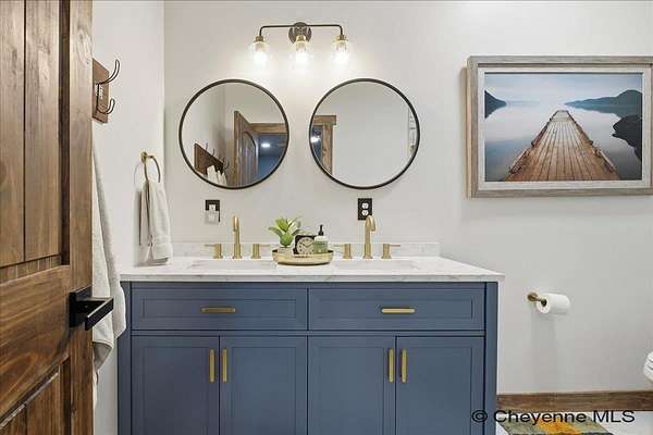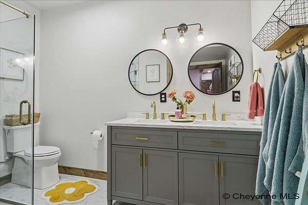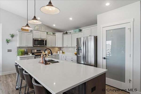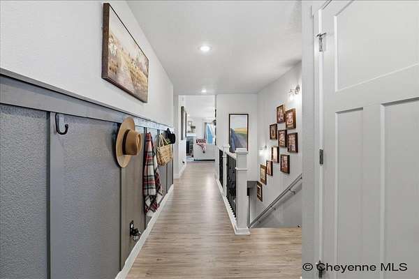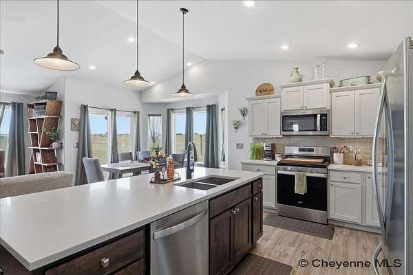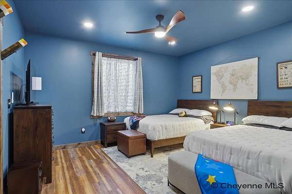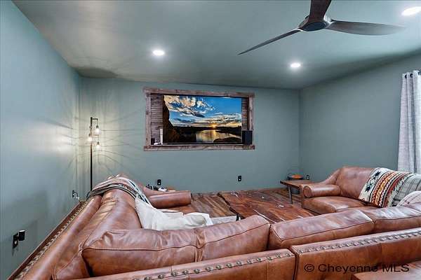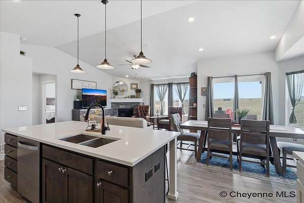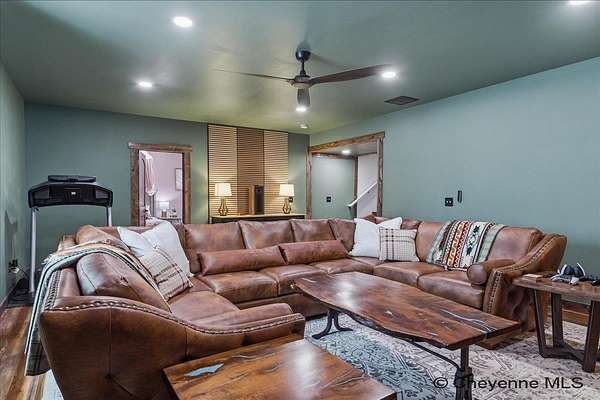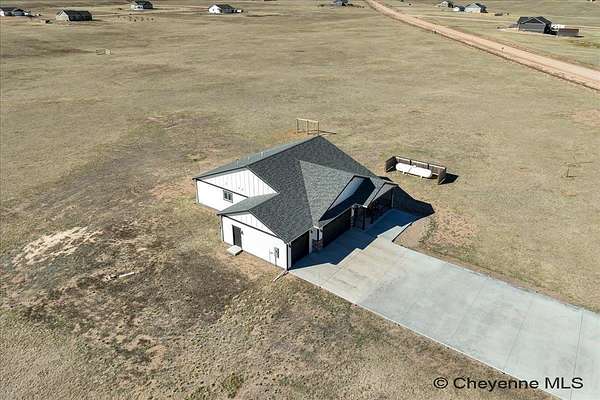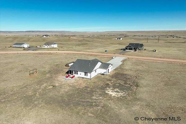 Set on over 6 acres just west of Cheyenne in the Happy Valley subdivision—locally known as Whispering Hills, this 5-bedroom, 4-bathroom home offers wide-open views, refined finishes, and a lifestyle that’s hard to find. The open-concept main level features quartz countertops, updated lighting and fixtures, and a clean, functional layout designed for everyday living and entertaining. The fully finished basement is the standout; complete with solid wood doors and trim, a custom built-in entertainment center with tongue-and-groove accents, and two oversized bedrooms, each with walk-in closets and private ensuite bathrooms featuring double vanities and glass tile showers. A large flex pantry with custom shelving is already plumbed for a wet bar or secondary kitchen setup. With over 6 acres, the outdoor space is a blank canvas—offering room to design, build, or simply enjoy the unobstructed views. Residents also enjoy access to neighborhood-designated common areas for outdoor recreation and wide-open enjoyment, adding to the sense of space and community. Additional features include a finished 3-car garage, solid concrete driveway, extended front and back patios, an updated laundry room and so much more. If you’ve been looking for space, views, and a home that’s already dialed in inside then this is where it comes together.