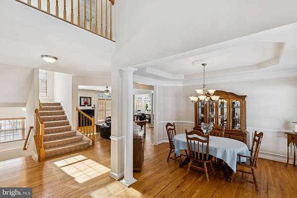 - Attic, Breakfast Area, Chair Railings, Crown Moldings, Dining Area, Eat-In Kitchen, Family Room Off Kitchen, Gourmet Kitchen, Island Kitchen, Open Floor Plan, Primary Bath(s), Recessed Lighting, Upgraded Countertops, Wet/Dry Bar, Window Treatments, Wood Floors