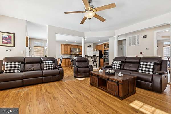 OPEN HOUSE on SUNDAY 1-3PM! Welcome to this gorgeous 4-bedroom, 3.5-bath Colonial featuring the popular "Oberlin" floor-plan and thoughtfully designed for today's lifestyle. Beautifully maintained and set on 2.4+/- acres backing to mature trees, this home offers exceptional outdoor space with NO HOA. Hardwood floors grace the main level, which includes a dedicated home office and an elegant living and dining room accented with decorative moldings. The well-appointed kitchen features granite countertops, a center island with breakfast bar, Jenn-Air stainless steel appliances, and a breakfast area, and opens to a spacious family room with cozy gas stove-ideal for everyday living and entertaining. A light-filled sunroom provides additional space to relax and enjoy the tranquil setting. The upper level features an impressive primary suite that serves as a true retreat, highlighted by a vaulted ceiling, sitting area, and two walk-in closets-one of which is the size of a small bedroom. The luxurious primary ensuite includes separate vanities, a glass-enclosed shower, and a large soaking tub. Three additional spacious bedrooms, a full hall bath with dual-sink vanity and tub/shower combination, and a conveniently located laundry room complete the upper level. The walk-out finished basement offers exceptional additional living and entertaining space with a wet bar and a full bath. Additional highlights include custom wood blinds on the upper level, a 3-car garage, a large storage shed, and an expansive 20' x 60' brick patio-perfect for enjoying the peaceful surroundings. Major recent improvements include a new hot water tank (2025), roof replacement (2020), and a newer washer and dryer. This remarkable property offers comfort, flexibility, privacy, and timeless appeal. Property PLAT/Survey, 3D Virtual Tour, and Floorplans are available.