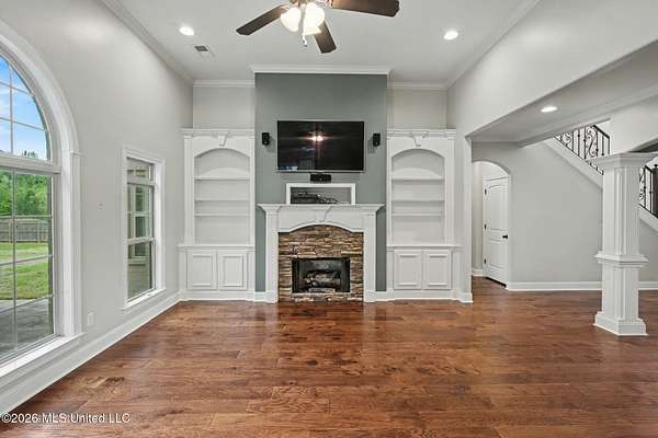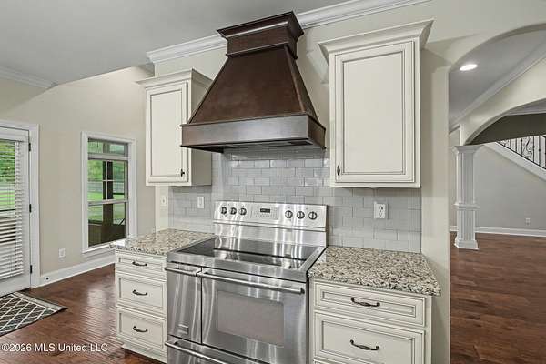 This custom-built Energy Star home sits on a generous 1.65-acre lot, offering both privacy and space, and the brick & stone exterior, along with the charming wrap-around porch outlined by lush landscaping, creates an impressive front. Once inside the double door entry, you will fall in love with the massive rooms and the way each room flows seamlessly to the next. This floor plan includes 4 Bedrooms, 3.5 Bathrooms, a Great room with a wall of windows, a gas fireplace showcased by custom built-ins on each side, a formal dining area that will accommodate a large dining table and all of your coordinating pieces, a downstairs office with a private entrance from the front side porch, making it perfect for a home business or quiet retreat. The massive kitchen features a huge island, tiled backsplash, upgraded cabinetry, a Frigidaire Professional Series range and a walk-in pantry. Natural light floods the space through a large window above the farm-style sink, and adjacent to the kitchen is a breakfast area plus a half bath for guests. The master bedroom boasts hardwood flooring and direct access to a private porch and the master bathroom is designed for luxury, featuring a corner tub, separate sink vanities, ornate tilework, and a well-designed walk-in shower with dual shower heads. Upstairs, you'll find three additional bedrooms and two full bathrooms. One of the bathrooms is private to Bedroom 2, providing a suite-like experience and there is an open sitting area that would be perfect for a small den or upstairs gathering room. Other interior features are hardwood flooring that runs throughout the main level, high-end light fixtures, a laundry room with an exterior door, a storage closet, locker station drop-off, multiple storage cabinets, and a hanging bar over folding area. There are 2 walk-in attics for the ultimate storage space, radiant barrier on attic roof decking and increased insulation throughout to save on utility costs. Outside you will enjoy a covered and screened back porch that is perfect for relaxing or entertaining, enhanced by two additional open patios on each side. The privacy-fenced backyard transitions to open fencing at the rear, allowing for scenic views of the wooded area and additional property behind the fence. The property also features a three-car garage, with the third bay heated and cooled by a mini-split system, ideal for year-round comfort and flexible use. Home is in the Center Hill School District and in an established subdivision with top-quality homes on manicured lots.