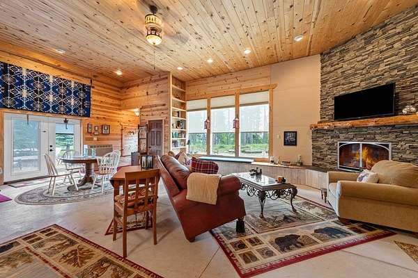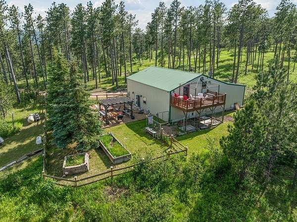 Listed by Bill Phillips (605)490-1358 with The Real Estate Center of Sturgis. Private 20 acre retreat with shop house and Forest Service on 3 sides!! If your looking for privacy, direct access to forest service andtrails, vaction property in the hills, or turn it into your year around home, this might be it. Shopouse features large open great room with loglanding above, tall ceilings, cozy fireplace, 2 bedrooms (1 non-corming) sitting area, 1 and 1/2 baths, deck with great views, garage area, fire pit, all bordering thousands of acres of forest service land. Access is by forest service road that is minimal/privately maintained.Call listing agent for details!