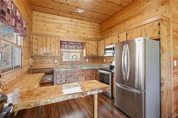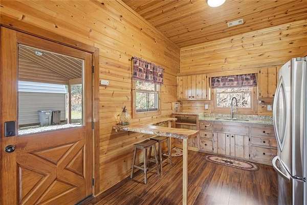 Flat Land. Mountain Views. Room for Your RV, Boat & Freedom to Breathe with No HOA. Escape to the North Georgia mountains and finally experience what buyers are searching for but rarely find... a cozy log cabin on level, usable land with mountain views and space to truly live. This inviting 2 bedroom, 1 bath cabin offers warm wood interiors, vaulted ceilings, and an easy, open layout that feels instantly relaxing. Whether you're sipping coffee on the porch or unwinding after a day on the lake, this home delivers that calm, mountain lifestyle. Step outside and it only gets better. Wide open, gentle acreage gives you room for your RV, boat, trailers, and all your outdoor gear with ease. A large carport and detached workshop add function, flexibility, and space to create your own setup. Lovingly maintained as a second home, this property is clean, simple, and move-in ready with a durable metal roof for peace of mind. Perfectly located between Blue Ridge and Blairsville, just minutes to Lake Blue Ridge, Morganton Point, hiking, dining, and everything that makes this area so desirable. If you've been waiting for a mountain property that offers peace, usability, and potential all in one... this is it!! Give me a call today to secure the peace you deserve.