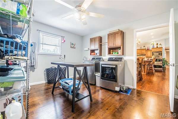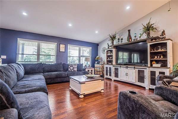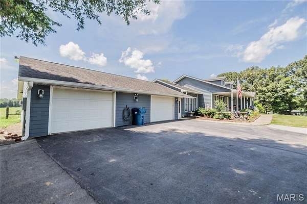 Spacious 5-bedroom, 3-bathroom home situated on 5 acres +/- just outside of Poplar Bluff. This two-story property offers flexibility and functionality with laundry rooms located on both the main and upper levels. In addition to the main living areas, the home includes two dedicated office spaces that can also be used as additional bedrooms, hobby rooms, or storage. The home features a 2-car attached garage as well as a detached 2-car garage, providing ample parking and workspace. The property is serviced by a private well and septic system. An additional septic tank and public water hookup are located on the property where a mobile home was previously placed--offering potential for future use, such as an additional structure or RV hookup. The land offers plenty of open space and is suitable for outdoor activities, animals, or future development. This home provides a combination of space, utility, and rural living.