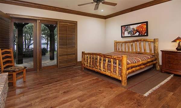 A lifestyle of casual elegance defines this stunning custom lakefront estate inside the prestigious Links at Land's End on world-famous Lake Fork. Quietly tucked away with its own private entrance, this one-of-a-kind property offers a serene sanctuary surrounded by beautifully landscaped grounds, majestic oak trees, and abundant wildlife. The home's dramatic great room is the heart of the residence, boasting a soaring 20-foot ceiling, massive wood-burning fireplace, and floor-to-ceiling windows framed by 16inch white oak and red oak timbers shipped from Washington State. From here, breathtaking panoramic views of the lake, the multi-tiered deck, and the property's 1,150 feet of shoreline unfold in every direction. The gourmet kitchen is a chef's dream, designed to accommodate entertaining on any scale with high-end appliances, granite counters, custom cabinetry, and walk-in pantry. Your guests will find comfort in three private ensuites; each designed for relaxation and privacy. Outdoor living is equally exceptional, with a multi-level deck highlighted by a stone-bordered pond...a gas fire pit, and endless views of Lake Fork. The short pier and private boat launch give direct lake access for fishing, boating, and sunset watching....part of everyday life. Two oversized garages...one provides room for vehicles, equipment, and golfcarts...the second garage boasts two drive-through bays leading directly to the launch. Additional features include a whole-house water filtration system, surround sound, large safe, and smart design for effortless living. As Members of The Links at Land's End...residents also enjoy access to one of the top-ranked golf courses in the country, a community pool, clubhouse, and on-site dining at Jackie's Pub. Built for both grand entertaining and private escapes, this custom home offers a rare combination of craftsmanship, natural beauty, and resort-style amenities. If you've been searching for the perfect Lake Fork lifestyle, you'll find nothing better!